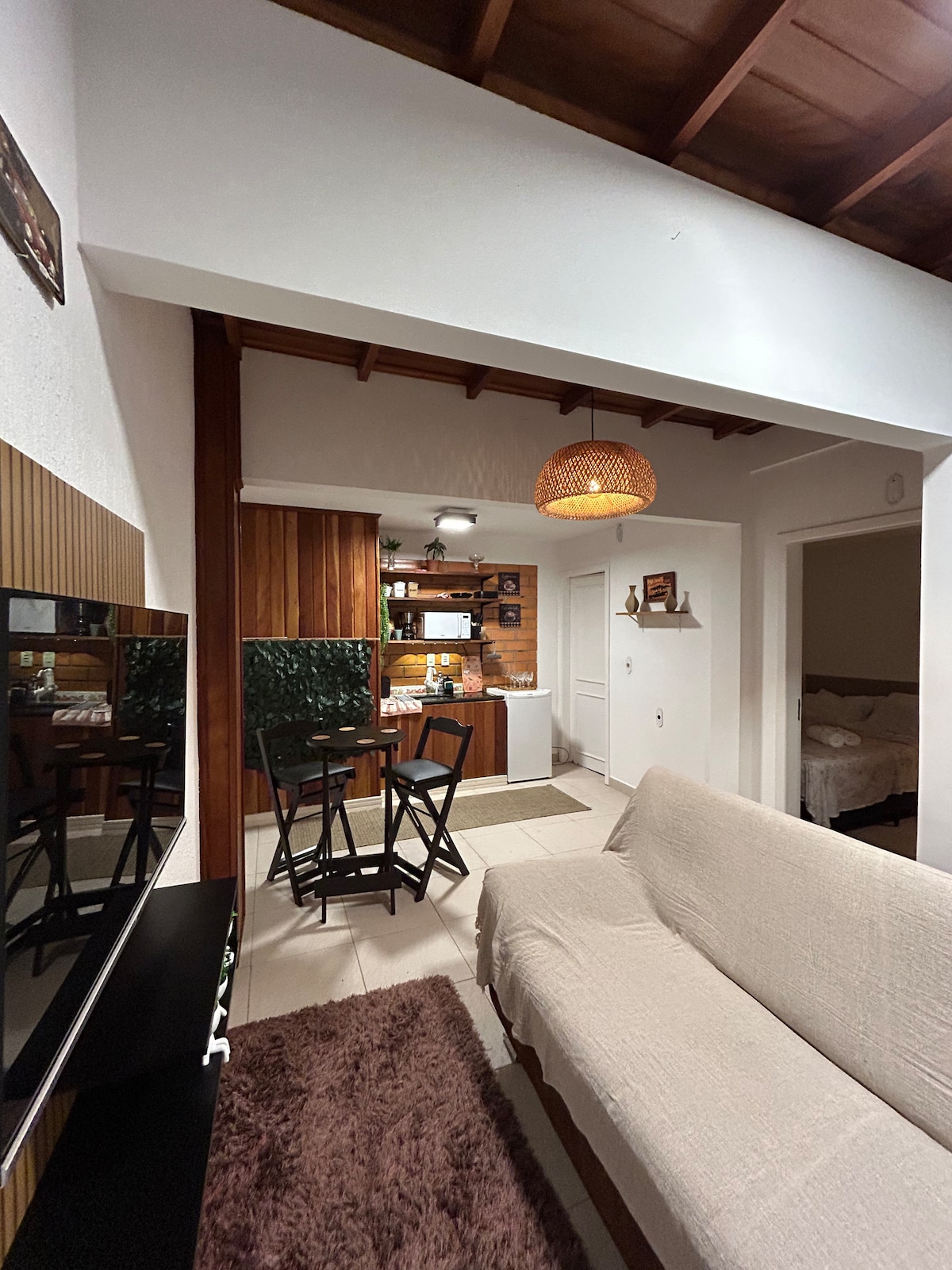 Incie o ano neste lugar único: Suíte nova na Praia do Estaleiro, a 600m do mar, em meio à natureza preservada. Ambiente moderno, silencioso e aconchegante, com cama de casal, ar-condicionado, frigobar e café da manhã. O diferencial é o teto de vidro, que traz luz natural e uma atmosfera única à noite, o café da manhã fica disponível na suite, com a liberdade de tomar no horário que desejar. Ideal para casais e quem busca tranquilidade e conexão com a natureza.