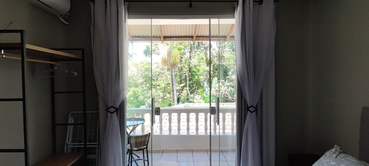 Pribadong guest suite na may balkonahe sa malaking bahay na kasama ang pamilya ng host. Kalimutan ang iyong mga alalahanin sa lugar na ito na nalubog sa Atlantic Forest, sa paraiso ng Taquaras, sa Balneário Camboriú. Opsyon sa almusal, tanghalian, at hapunan nang may dagdag na halaga.