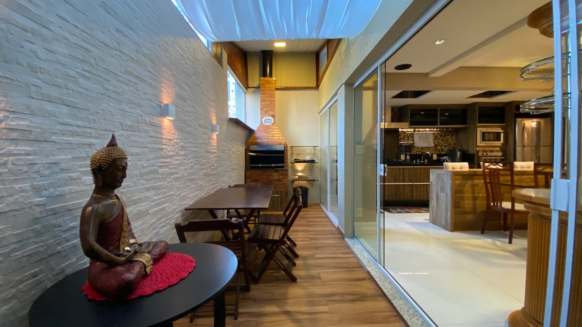 Magsaya kasama ang lahat ng iyong pamilya at mga kaibigan sa naka - istilong lugar na ito. Maingat na idinisenyo ang apartment na may disenyo ng arkitektura at ilaw para sa iyong pinakamahusay na kaginhawaan at mga kamangha - manghang araw. Naisip at nilikha ang tuluyan para magkaroon ka ng kaginhawaan at lahat ng kinakailangang gamit para sa perpektong pamamalagi, para man sa bakasyon, pahinga, o trabaho para maging komportable ka. Matatagpuan sa Barra Sul, isa sa pinakasikat at pinakamadalas puntahan sa lungsod na kilala rin bilang "Brazilian Dubai".