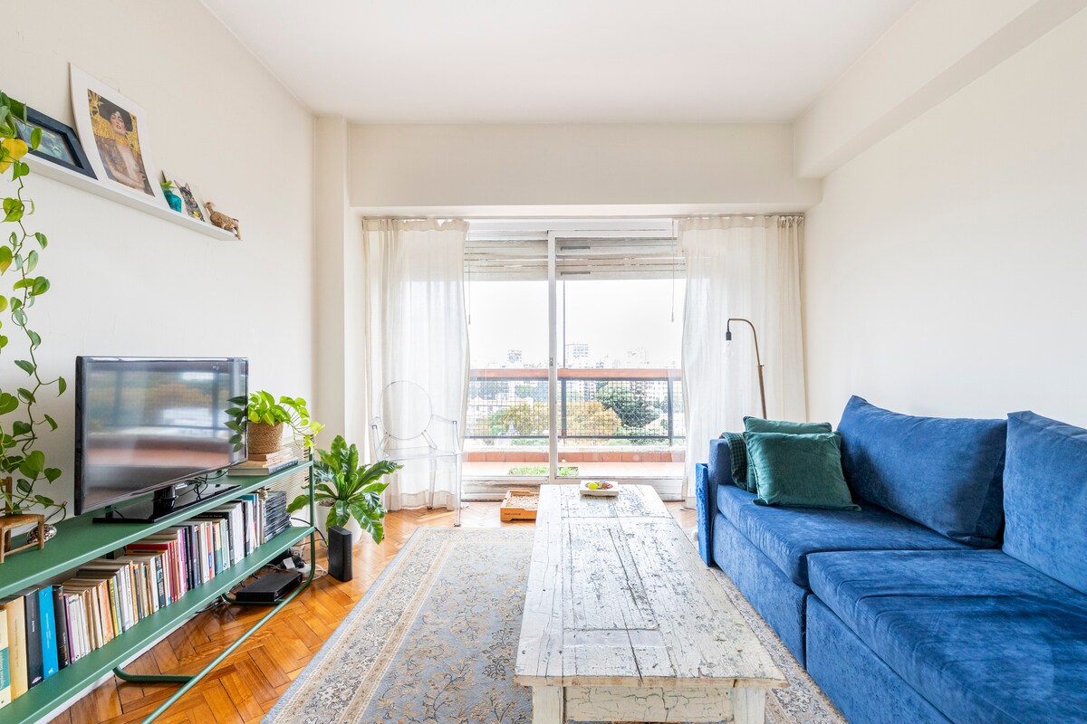 Beautiful apartment on the first floor by stairs of a historic building in Buenos Aires, in the Chacarita neighborhood (recently named one of the coolest neighborhoods in Buenos Aires) a few blocks from Palermo and two blocks from all major bus and subway lines. The apartment is located in the center of the building which makes it extremely quiet and peaceful. It was completely renovated a few years ago with design details. It is equipped with Wi-Fi, cable TV, hot and cold air conditioning.