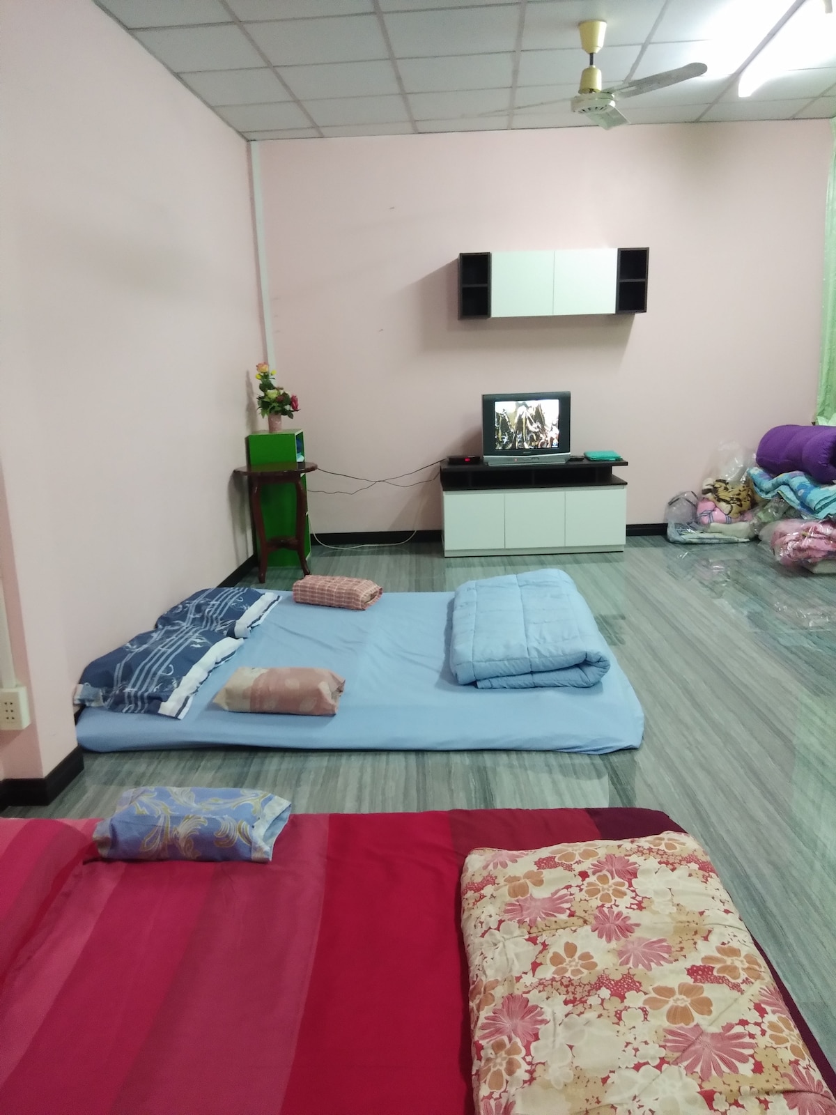 A big and cheap house for a big group. Easy to get transportation ( 10 minutes walk from Railway Station and bus station) Have a market in the morning and evening just 5 minutes walk. 3 shops where open 24 hours (2 : 7-11 and 1 : Tesco lotus) In front of the house have a big space parking, so many restaurants and coffee shop. A big laundry shop in front of the house. Enter to the house by normal key. Easy to find No wifi and breakfast provide. Private house.