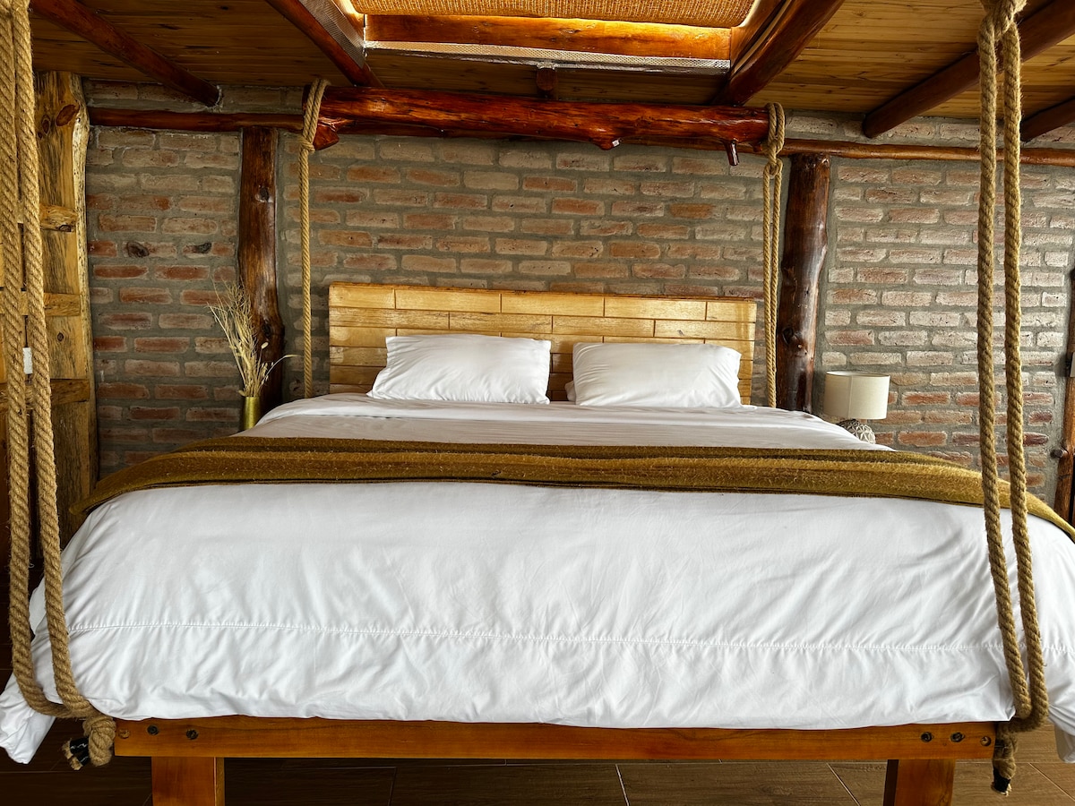 Confort 5* en una choza tradicional de 120 m2: - dos habitaciones matrimoniales (1 master y 1 más pequeña) - un segundo piso tipo mezzanine con dos espacios separados, cada uno con 1 cama matrimonial y 1 cama individual - un gran espacio común con 1 sofa-cama, mesa-comedor, espacio de relax con fogata, zona café, minibar y TV Android - baños con duchas espectaculares y tina de agua caliente al aire libre. Una experiencia excepcional a compartir en familia o grupo de amigos.