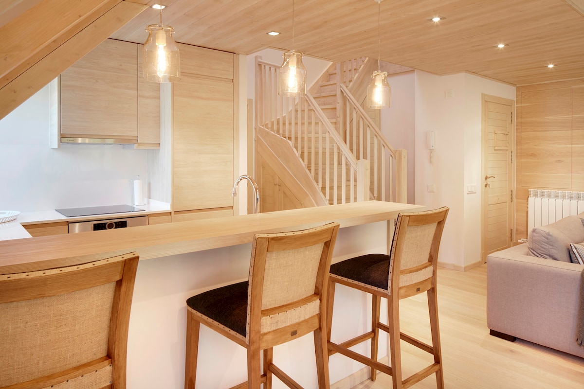 Niu 1500 is a cozy 35 m² loft Ski located on the 5th floor of the Mauberme Building, right on the slopes in Baqueira 1500. Perfect for 2 to 4 guests, it combines modern design, warmth, and comfort. Features a King Size bed (180x190), sofa bed (160x200), kitchen with island, 43” Samsung Smart TV, free WiFi, and a private ski locker. 🚭 No smoking | 🐾 No pets | 🎿 Skis and boots must be stored in the ski locker.