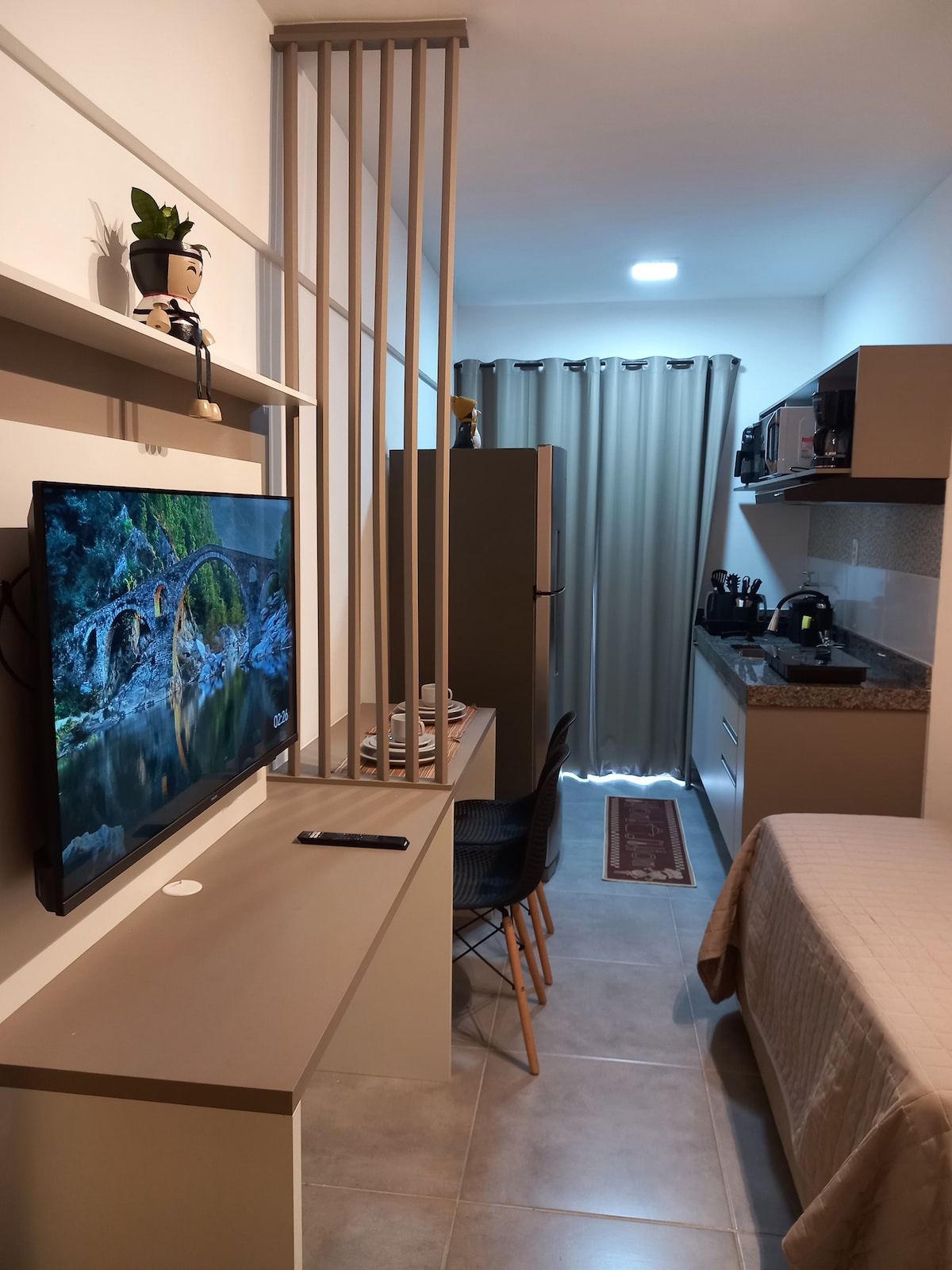 Projetado para o seu bem-estar, o studio é impecavelmente limpo, organizado e aconchegante. A decoração minimalista e os móveis confortáveis criam uma atmosfera leve e agradável. Abrace a praticidade neste lugar tranquilo e bem-localizado.