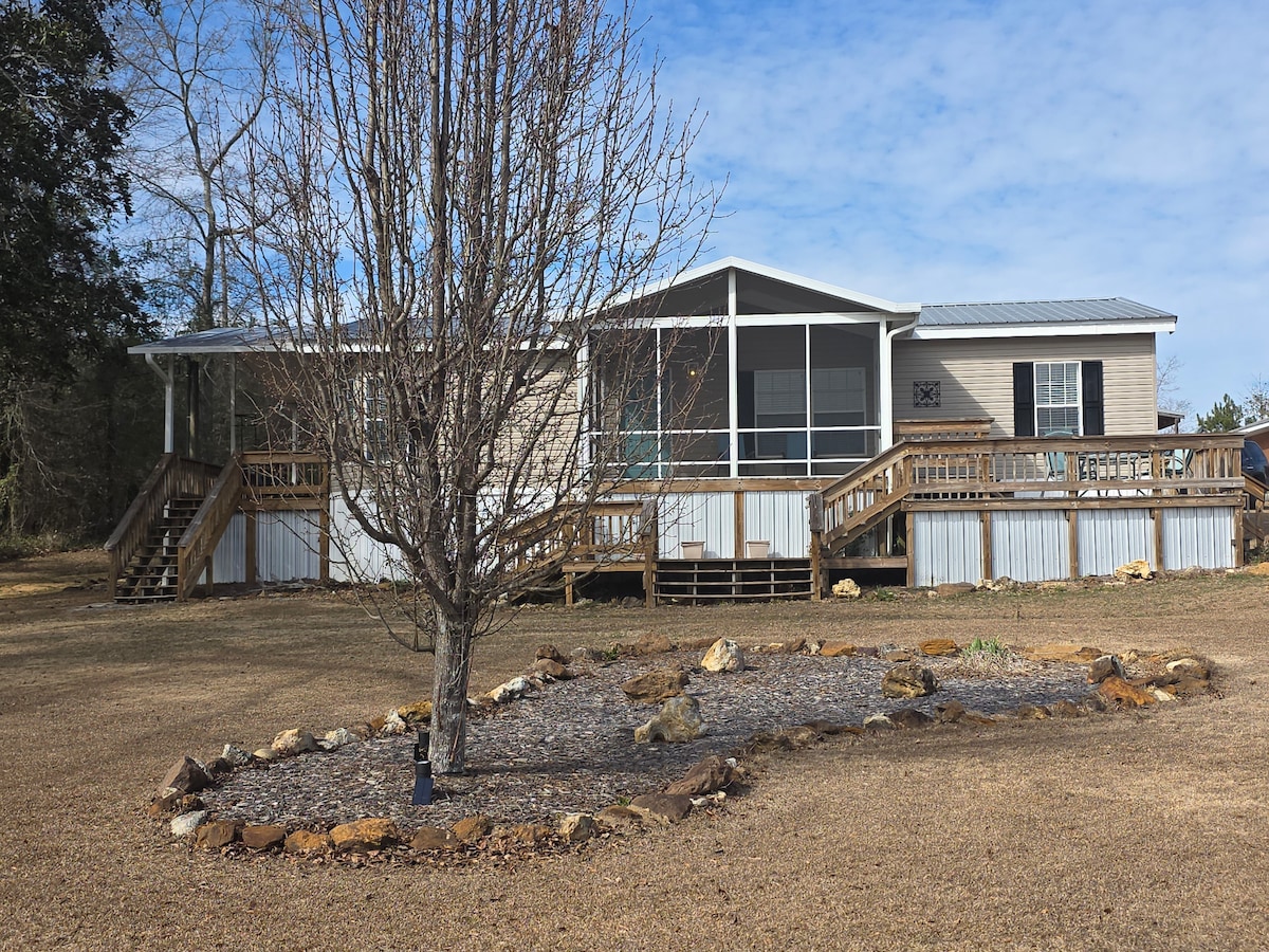 Dumadaan ka man o nagbu - book para sa isang paligsahan sa pangingisda, pupunta ka man sa bayan para mangaso, kami ang bahala sa iyo! Mayroon kaming malaking turnaround at paradahan para sa iyong mga bangka. Wala pang 2 milya ang layo namin mula sa Lakepointe Marina at iba pang drop - in sa lawa. Ilang minuto kami mula sa Spring Hill at mga nakapaligid na lugar para sa inyong lahat na darating para manghuli. 3 milya mula sa makasaysayang bayan ng Eufaula na may mga restawran at amenidad. Mainam kami para sa mga alagang hayop! Pero hindi kami naglilinis pagkatapos ng iyong mga alagang hayop.