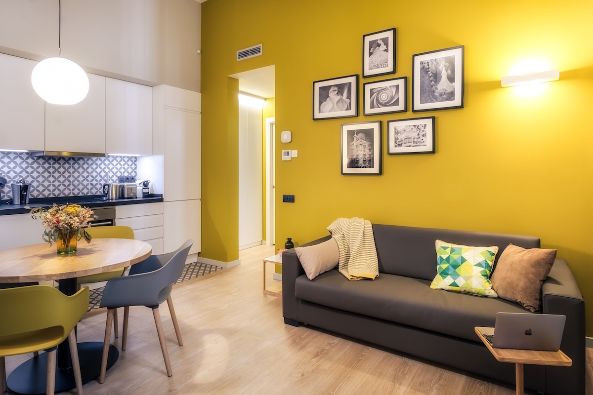 Apartamento Gaudir, na may mga modernistang inspirasyon. Maliwanag, sentral at ligtas.