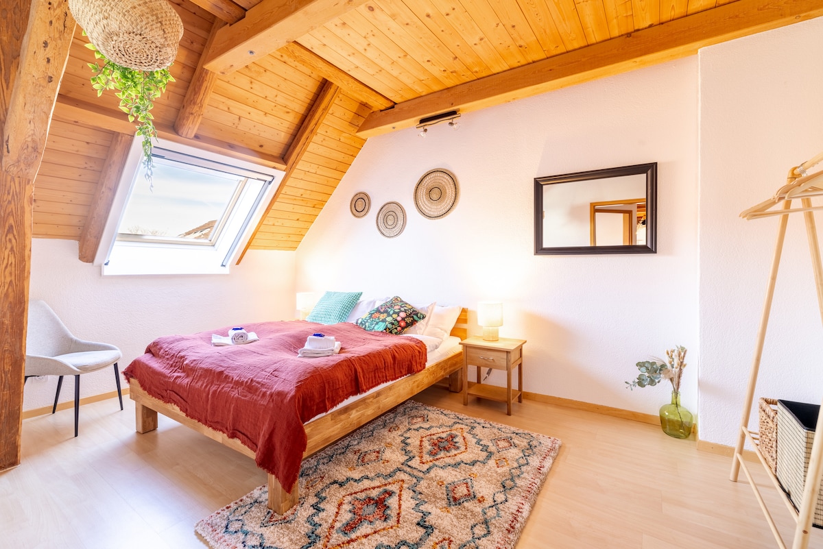Mamuhay nang walang tiyak na oras sa pambihirang ecolodge na ito sa gitna ng kalikasan, 15 minutong biyahe mula sa Bern . Ang diwa ng Bali sa iyong kuwarto, na may isang tanso bathtub na ginawa sa isla, bilang paggalang sa kanyang natatanging craftsmanship. Sa tag - araw, ang esmeralda - kulay - kulay pool, isang tango sa Aare River at Madagascar gemstones, ay isang imbitasyon sa kasariwaan at paglalakbay. Sa loob, marangal na kakahuyan, maligamgam na tono at arkitektura na may mga moderno at malinis na linya.