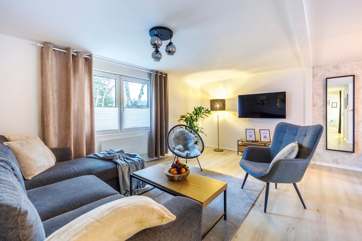 Nag - aalok kami ng bungalow na may kumpletong kagamitan na may maliit na terrace na binubuo ng 2 kuwarto, kusina, pasilyo at 2 sanitary room. Bukod pa sa central heating, nilagyan din ito ng underfloor heating, kaya komportableng mainit - init din ito sa taglamig. Matatagpuan sa silangang labas ng lungsod, sa tahimik at berdeng lokasyon na may mga plano. Paradahan. May iba 't ibang ekskursiyon sa malapit. Magandang koneksyon sa pampublikong transportasyon sa sentro ng Berlin at sa paligid ng Berlin. Check - in 2:00 PM Pag - check out: 10:00
