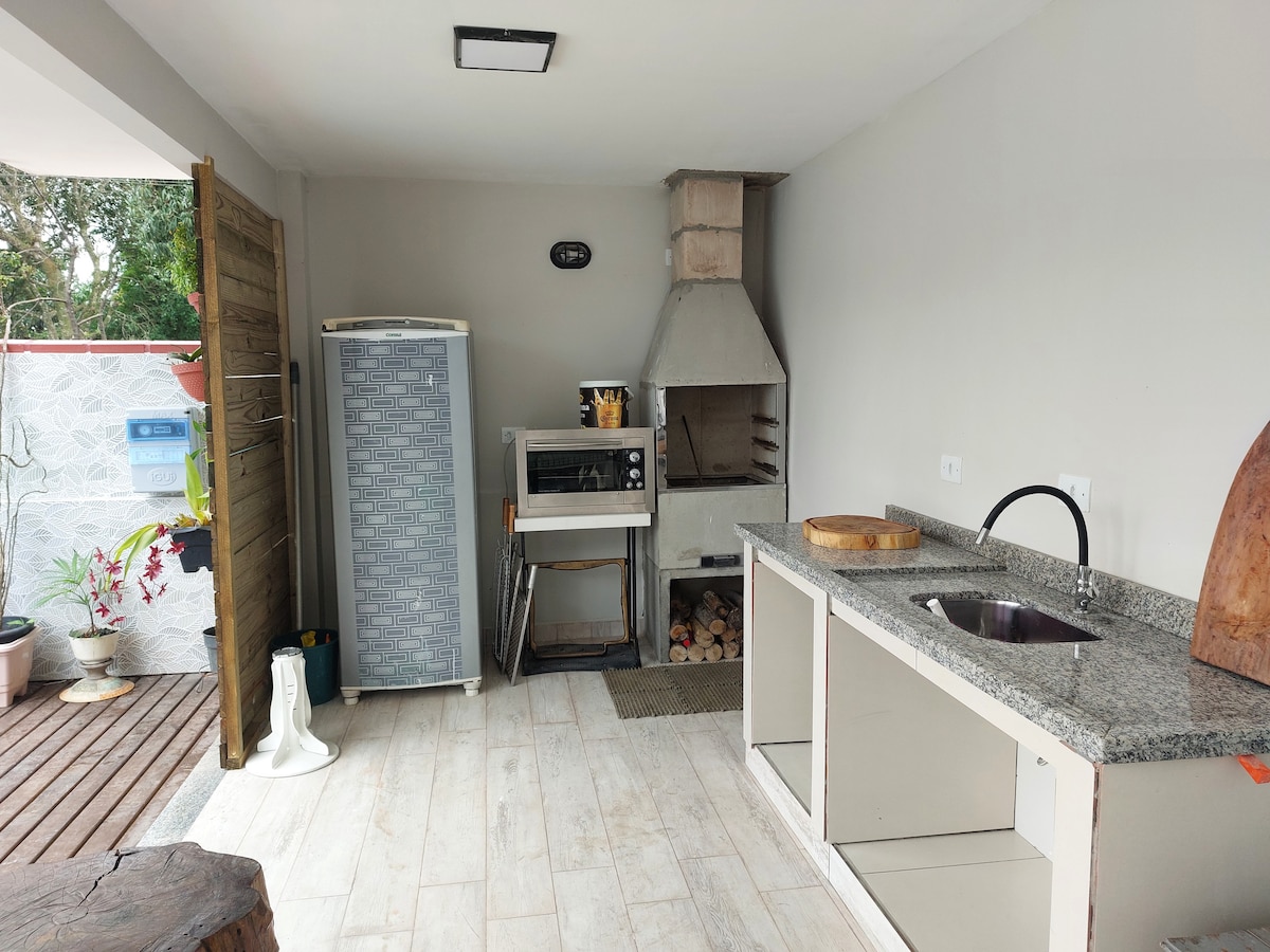 Ito ang beach house ng Itapoá na hinahanap mo para makasama ang iyong pamilya nang ilang araw. Idinisenyo ito para sa kaginhawaan ng aming mga bisita. Walang mga kongkretong mesa at bangko, ang lahat ay ginagawa nang may malaking pagmamahal. Napakahusay na lokasyon: malapit ang bahay sa dagat (300 metro), malapit sa mga pamilihan, parmasya, panaderya, ice cream maker at kaginhawaan. Tahimik na lugar. Kahindik - hindik ang barbecue area na may pool! Palaging pinupuri ang aming serbisyo. Halika at makipagkita!