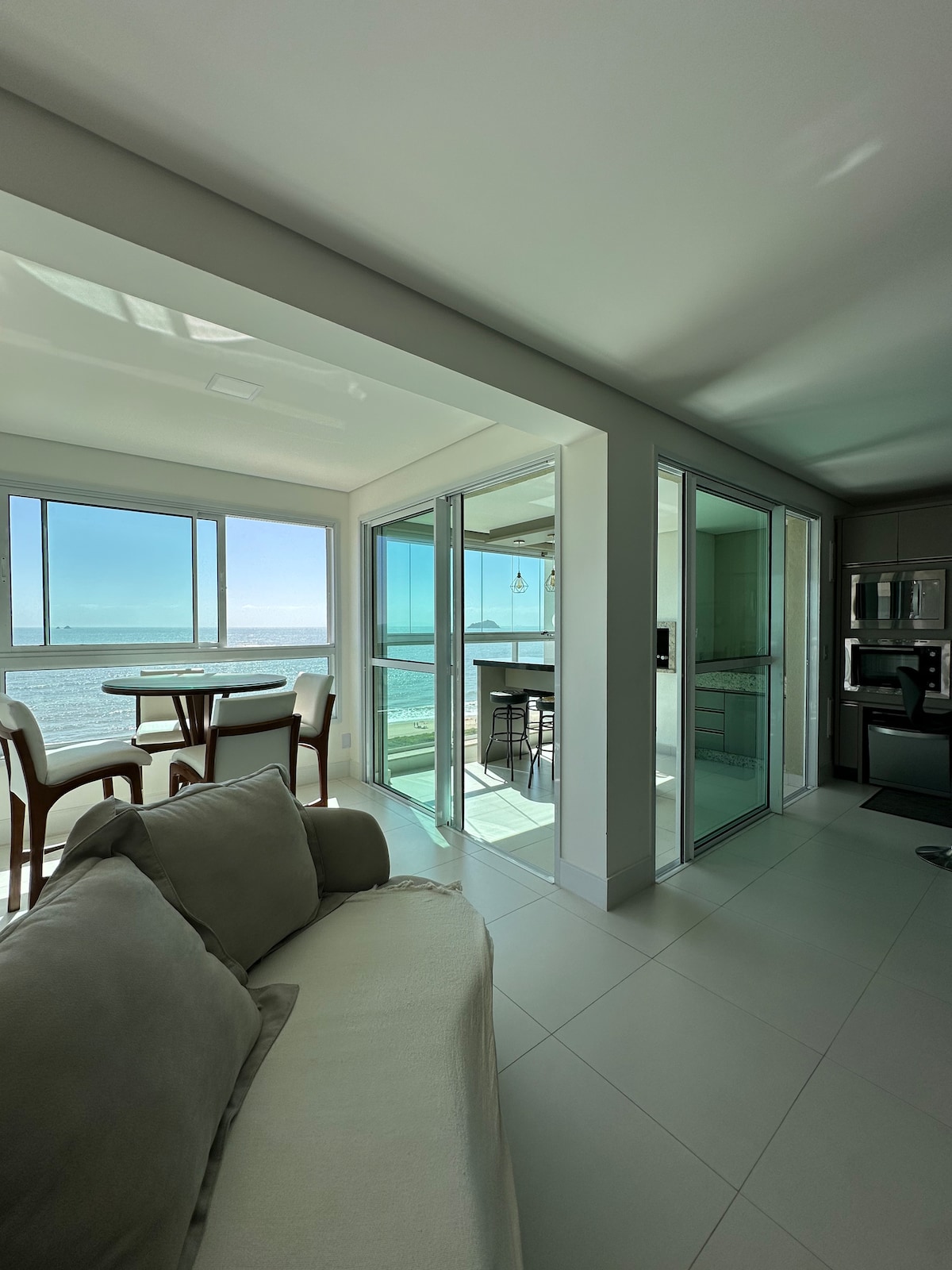 Pumunta sa pinakamagandang lugar para mag - enjoy kasama ang pamilya o mga kaibigan sa harap ng beach! 40 minuto mula sa Beto Carrero (ang pinakamalaking theme park sa Latin America). 5 minuto mula sa Havan Mga bar, tindahan, at restawran na malapit sa Talagang kumpleto ang kagamitan sa bawat kuwarto May sariling TV room (puwedeng gamitin ang couch bilang higaan) Pinaghahatiang patyo, lugar ng BBQ at pool Balkonahe na may tanawin ng dagat Garagem own (na may direktang pasukan sa apto) 2 silid - tulugan na may suite at pangatlong buong banyo