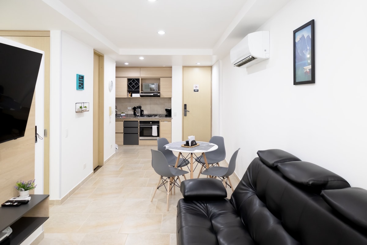 Moderno Apartaestudio Amoblado con Todas las Comodidades Disfruta una estadía cómoda y placentera en este elegante apartaestudio totalmente amoblado, diseñado para ofrecer confort y funcionalidad. El espacio cuenta con excelentes acabados, una distribución moderna y todas las comodidades que necesitas para sentirte como en casa. El lugar es perfecto para viajeros de negocios, parejas o personas que buscan comodidad en ambiente tranquilo y moderno. ¡Tu próximo hogar lejos de casa te espera!