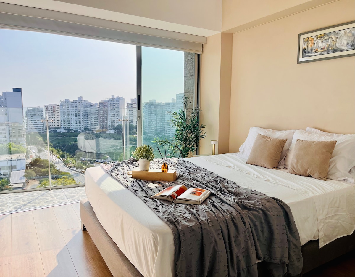 Mararangyang Airbnb na may mga nakamamanghang tanawin ng karagatan, na pinaghahalo ang modernong kagandahan at tunay na kaginhawaan. Isang bloke ang layo sa BAGONG “Puente de la Paz”. Magrelaks sa isang chic, komportableng lugar na may state - of - the - art na air conditioning, kidlat - mabilis na fiber optic Wi - Fi para sa remote na trabaho, at mga premium na kasangkapan. May toilet ng TOTO. Malapit lang sa Maido, ang #1 restawran sa buong mundo (2025), at sa Central (2023), pati na rin sa mga nangungunang kainan, artisanal na kapihan, museo, at Larcomar mall.