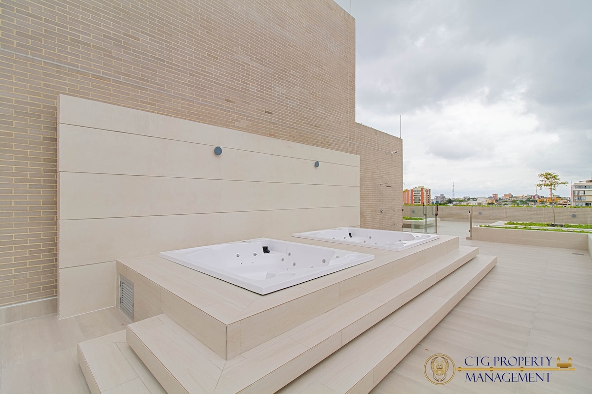 Magkaroon ng di-malilimutang karanasan sa modernong apartment na ito na may estilong loft sa ika-9 na palapag ng GZ Tower: * Pleksibleng pag - check in at pag - *Wi-Fi 900 Mbps *Isang bloke mula sa klinikang Ibero‑American at tatlong bloke mula sa Viva Mall. *1 kuwartong may queen bed at A/C. *Sala na may sofa bed at air conditioning. * Washer/Dryer *May gym na Smartfit sa malapit (may bayad). *Libreng pribadong paradahan * Tamang-tamang lokasyon: Malapit sa mga shopping center, pangunahing klinika, at lugar ng turista.