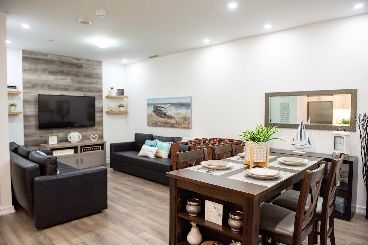 Magiging malapit ang iyong pamilya sa lahat ng bagay kapag namalagi ka sa amin. Malapit ang suite sa ospital ng RVH (3.5 km) papunta sa mga restawran ng downtown Barrie, shopping, craft brewery at kamangha - manghang waterfront/ beach. 2 min. sa Hwy 400 - Central sa mga lokal na ski resort (Horseshoe Resort, Mount St. Louis Moonstone, Snow Valley) at mga golf course. Bagong update na may midcentury modernong vibe, ang kusina ay kumpleto sa gamit sa soapstone counter, undermount sink, dishwasher at refrigerator na may ice - maker. Pribadong outdoor space/BBQ