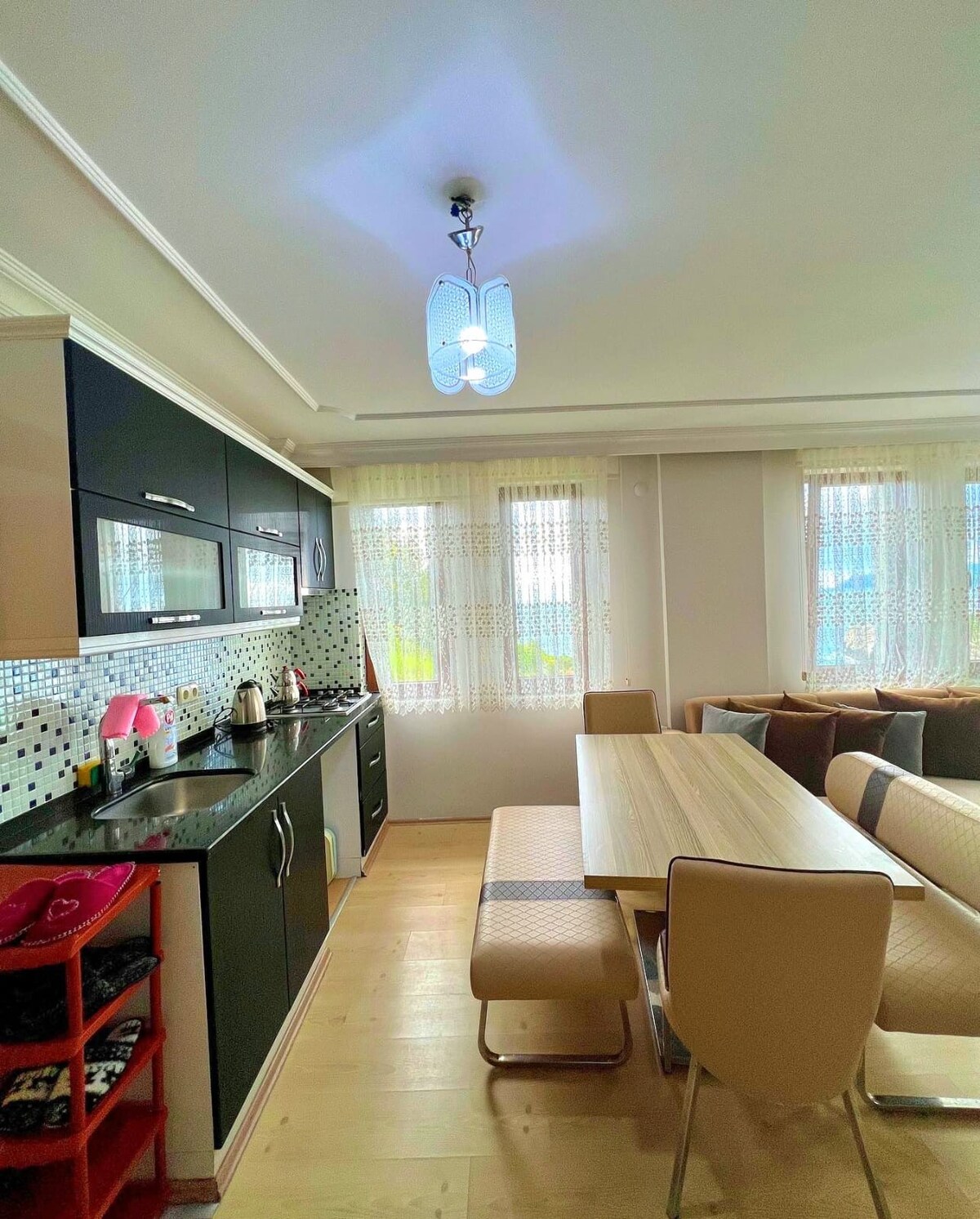 Umupo at tamasahin ang Amasra sa tahimik at naka - istilong tuluyan na ito. Ang aming mga modernong design room ay may maliit na kusina at balkonahe 200 metro lang ang layo mula sa dagat. Naka - air condition ang aming kuwarto. Matatagpuan ito sa ika -2 (pasukan+2) palapag at walang elevator.