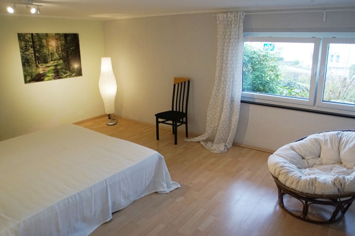 1 room with for 2 people,couch,small fully equipped kitchen,bathroom with window. The apartment has its own entrance in a green,quiet location at the gates of Koblenz, 5minutes to the university;Walks on the edge of the forest possible; Seating area outside; 10 minutes by car to the city of Koblenz,the Rhine Valley or the Moselle Valley;for nature lovers-hikers and guests who like to live quietly in the countryside and are still well connected to all the highlights in the region. (car required)