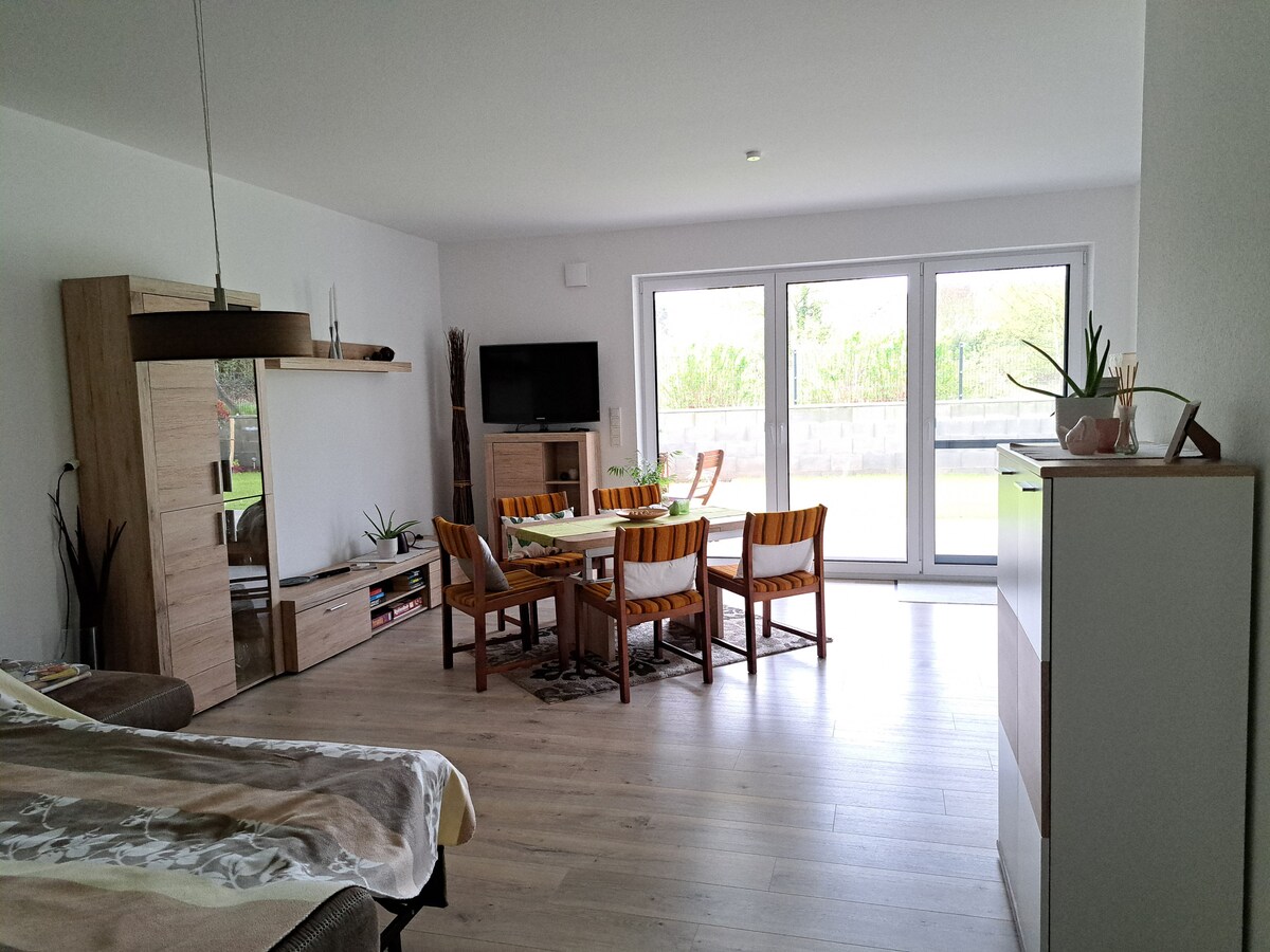 Dito ka kaagad puwedeng maging komportable bilang bisita sa holiday. Ang apartment na ito ay angkop para sa mga mag - asawa o pamilya na may mga anak at para sa mga pansamantalang propesyonal na pamamalagi, ang lahat ng mga pagkakataon para sa self - catering ay ibinigay. Maayos ang kusina. Mainam para sa pagpapahinga ang terrace at hardin.