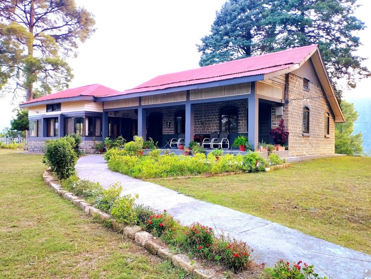 Isang perpektong lugar na pampamilya kung saan maaari kang magpahinga mula sa iyong abalang buhay habang ginagawa ng mga bata ang kanilang kasiyahan sa mga bukas na damuhan at hayaan kaming i - host ka sa aming lokal na hospitalidad. Isa itong Mansion sa kanayunan na inspirasyon ng rustic at modernong arkitektura na may 300 degree na tanawin ng mga pine forest at Thandiani hill. 100% garantisado ang privacy. MALIGAYANG PAGDATING!