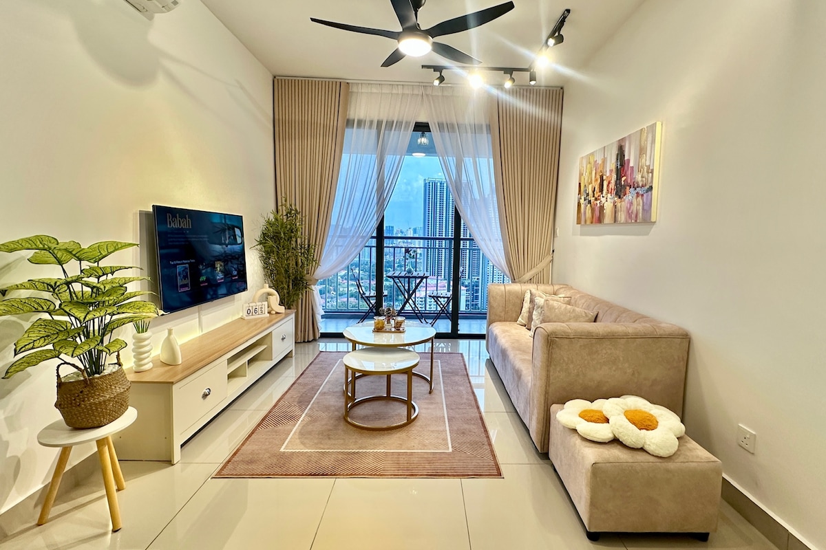 Welcome sa Arches & Amber, isang tahanang may 3 kuwarto na pinag‑isipang idisenyo at naghahalo ng mga earth tone at modernong kaginhawa May queen‑size na higaan sa bawat kuwarto na perpekto para sa mga pamilya, magkakaibigan, o business traveler na gustong magpahinga. Mag‑enjoy sa komportableng tuluyan, magandang dining area, at tahimik na kapaligiran pagkatapos ng mahabang araw sa lungsod. 📍 5 minutong biyahe papunta sa Jinjang MRT ☕ 5 min sa lokal na kopitiam at kainan Mainam para sa mga bisitang naghahangad ng kaginhawaan, kaayusan, at tahimik na bakasyunan malapit sa mga pangunahing pasyalan sa KL.