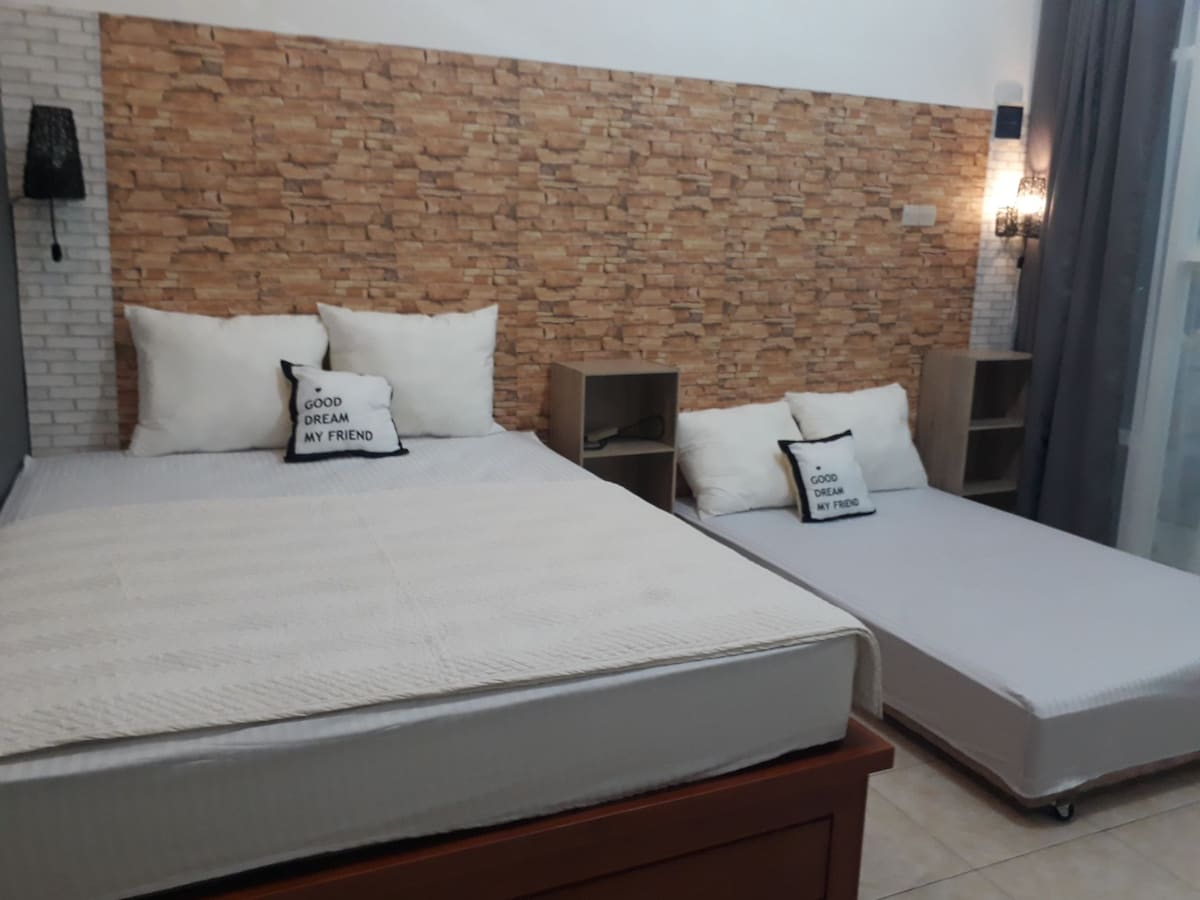 Ang komportableng tirahan ay parang may kusina na may estilo ng cafe na sinamahan ng pag - awit mula sa mga puno at lamig ng lungsod ng bato at kaluskos ng tunog ng tubig sa swimming pool na lumilikha ng iyong bakasyon kasama ang iyong pamilya o mag - asawa. At tangkilikin ang mga pasilidad ng karaoke at bbq na maaaring magdagdag ng intimacy