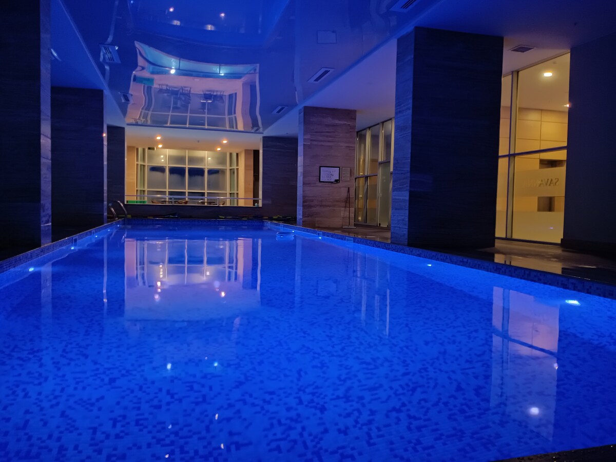 Modernong studio room, May magandang tanawin ng katarungan at mga fountain sa pagkanta Magiging komportable ito para sa mga mag - asawa at bisita na bibisita sa lungsod para sa trabaho. Makakatulong ang komportableng microclimate na suportahan ang sistema ng Daikin Split. Ang gusali ay may spa - pool ( dagdag na singil sa pamamagitan ng Mariot hotel)