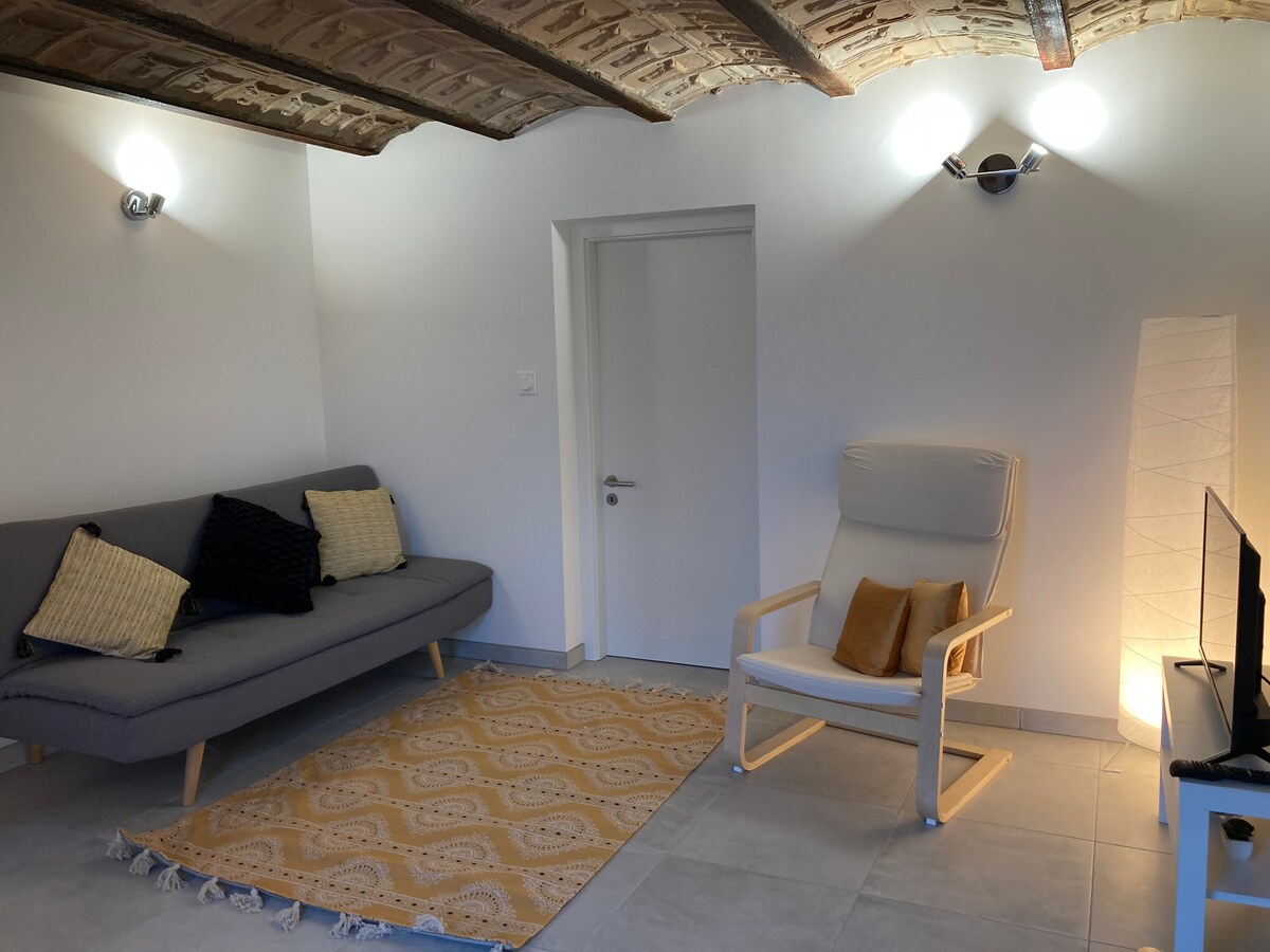 2 kuwarto apartment ng 30 m2 sa ground floor: - silid - tulugan na may 1 kama 140 x 200 cm - living area na nilagyan ng sofa bed - banyong may shower, toilet - kusina na nilagyan ng dishwasher, oven, microwave, takure, coffee maker ... Sa loob ng isang bahay ng ilang tahimik na apartment sa isang berdeng kapaligiran. Mga sapin (mga higaan na gagawin ng bisita ) at mga tuwalya na kasama sa presyo ng paglilinis.