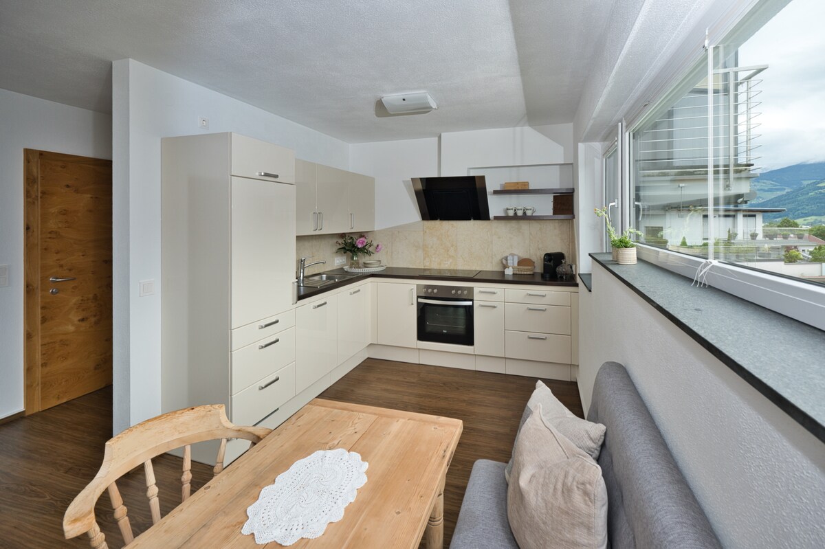 Matatagpuan sa labas ng isang Tyrolian mountain village, nag - aalok sa iyo ang lugar na ito ng napakagandang tanawin. Ang apartment, na buong pagmamahal na pinagsasama ang tradisyon at modernidad ay hahayaan kang huminahon at i - recharge kaagad ang iyong mga baterya. Ang isang malapit na cable car ay nagbibigay - daan sa iyo sa lahat ng uri ng mountain sports sa tag - init at taglamig. Gayunpaman - kahit na ang mga iyon, na "mananatili at namamahinga" ay magiging komportable. Available nang libre ang WIFI, TV, BT - box, parking space; para sa Sauna, kumukuha kami ng maliit na feey. Kusina ay mahusay na kagamitan .