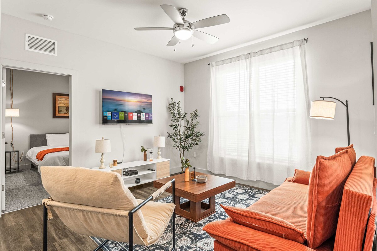 Pribadong studio para sa bisita sa perpektong lokasyon sa Orlando, 5 minuto mula sa I‑Drive, Universal Studios, Disney World, at mga premium na shopping outlet. Napakatahimik at kaaya-ayang kapitbahayan na nasa distansyang puwedeng bisikletahan papunta sa “Restaurant Row” kung saan matatagpuan ang lahat ng paborito mong restawran. Madaling mapupuntahan ang lahat ng pangunahing highway / 15 minutong biyahe papunta sa Disney! May modernong industriyal na hitsura ang tuluyang ito na may matataas na kisame. Mamalagi at magluto gamit ang lahat ng amenidad kabilang ang washer at dryer.