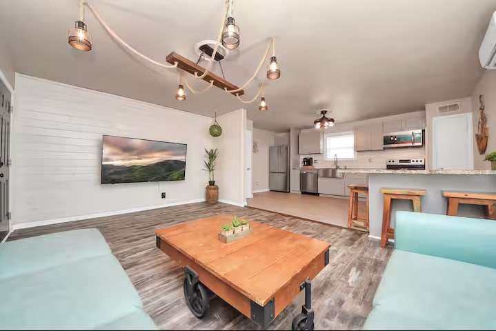 Mamalagi sa moderno at magarang Airbnb namin. Nilagyan namin ang bawat bahagi ng patuluyan namin ng mga gamit na may pinakamataas na kalidad na kung saan mismo kami ay mananatili. - Unit sa itaas lang 1 queen bed Nasa magarang kapitbahayan ang lokasyon na 3 minuto lang ang layo sa beach kapag nagmaneho o 10 minuto kapag naglalakad. 5 minutong biyahe rin papunta sa maraming sikat na lokal na restawran sa ika-61. Pati na rin ang 1min drive sa Moody Gardens at Schliterbahn! *May hiwalay na unit ng Airbnb sa ibaba*