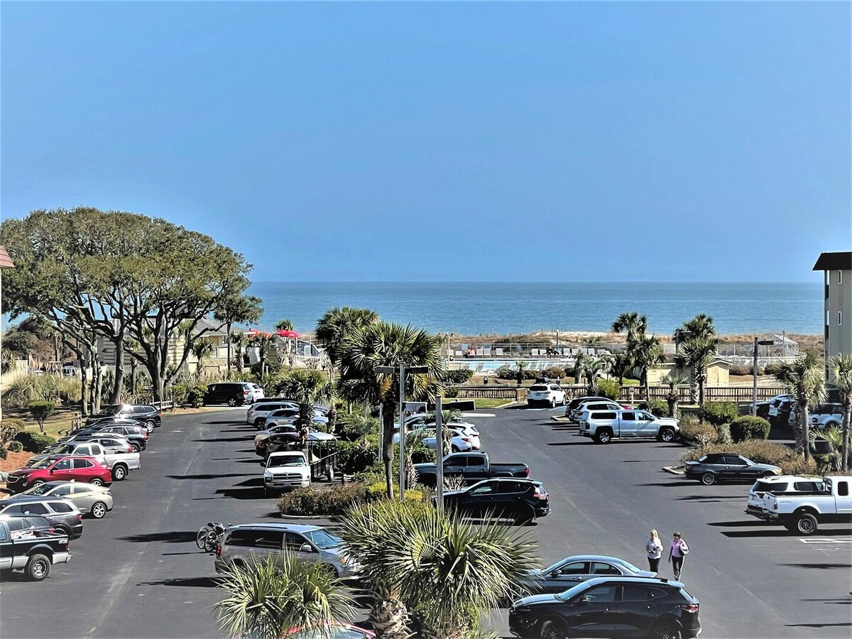 ✨Top 5% Guest Favorite✨ Beachfront Building Quiet Views of Coastal Marsh, Ocean & Trees KING BED + Big SmartTVs HGTV Decorator Designed FREE Tennis, Gym, Pickleball, Basketball, Volleyball Coastal Decor Private Top Floor Balcony Beach Chairs + Ice Chest Provided Couples Retreat! 2-3 min walk to beach! RESORT: 4 Beach Boardwalks! Huge Oceanfront Pool Beachfront Bar & Grille Sports Bar 2nd Pool FREE Tennis, Gym, Pickleball, Basketball, Volleyball & More Bike Rentals Gated w/24 Hour Security!!
