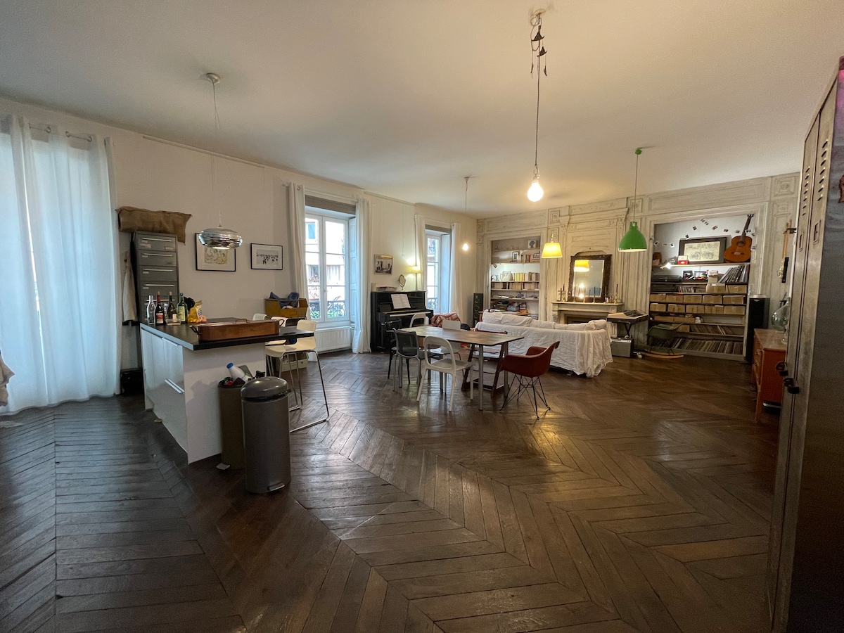 Loft maaliwalas na matatagpuan sa gitna ng MÂCON kasama ang spa balneotherapy 2 lugar nito vs can vs refresh o init mula 25C hanggang 42c na may rose petals Komplimentaryong bote Available ang mga cafe,tsaa... Netflix Matatagpuan sa isang klaseng burges na gusali ( kapansin - pansin) hindi pinapayagan ang party Mga puwesto sa ibaba ng gusali nang may bayad ,libreng pista opisyal, at mula 6pm hanggang 8am Maraming libreng paradahan 300m ang layo Rue bigonnet at Rue du concours 300 metro mula sa mga pampang ng Saône Restaurans,bar,tindahan, istasyon ng tren,palengke...