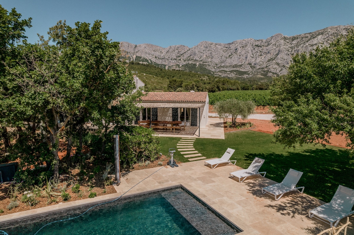 Tahimik na villa ng arkitekto na matatagpuan sa kanayunan ng Aix sa paanan ng kahanga - hangang lugar ng Sainte Victoire. Bagong heated pool! 5 minutong biyahe papunta sa Aix en Provence at 45 minutong papunta sa mga beach. Ang kontemporaryong estilo, na binuo gamit ang mga materyales at sa isang de - kalidad na kapaligiran, ang villa ay maaaring tumanggap ng 4 na tao nang komportable. Para sa mga pamilyang may sanggol, makikita mo ang payong na kama, mataas na upuan, footstool, toilet reducer, deckchair, mga laruan, at paliguan ng sanggol (nang walang pahinga sa ulo).