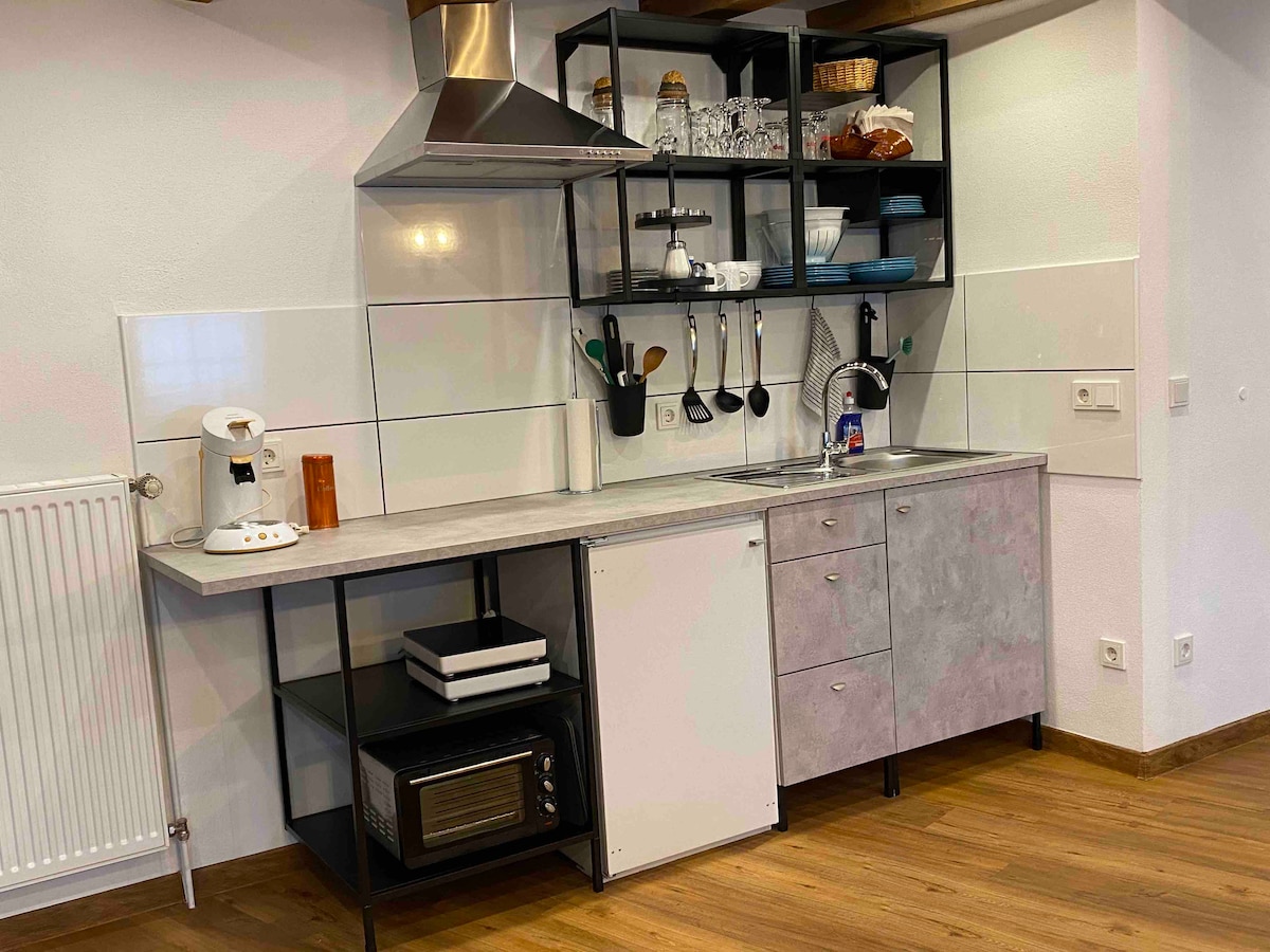 Unsere Einliegerwohnung "Zum kleinen Zollstock" ist klein aber OHO. Sie ist ebenderdig erreichbar. Das Badezimmer bietet neben Toilette und Waschbecken eine bodentiefe Dusche. Handtücher und Duschgel sind vorhanden. Die Schlafcouch kann auf 1,60m ausgezogen werden und lädt mit dem drehbaren Smart TV zum relaxen ein. Die Küchenzeile ist vollausgestattet mit einem Kühlschrank, Induktionskochfeld, Mini-Backofen, Geschirrspüler, Kaffeemaschine, Wasserkocher und passendem Zubehör.