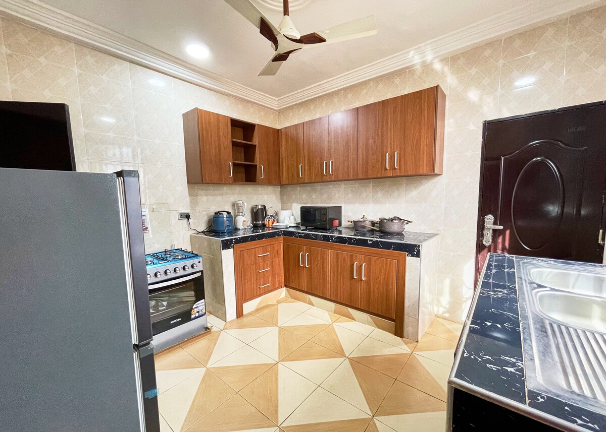 This unique place has a style all its own. Make yourself at home in our cosy, modern apartment in the picturesque right at the heart of Sunyani. We have 1 and 2 bedroom apartments available for your business and family trips. The Apartment has cozy bedrooms with nice and hygienic bathrooms and lovely living room, free high-speed WIFI, fully equipped kitchen with washer, TV with international channels, air-condition and a new modern interior. Intact lighting and security at night.