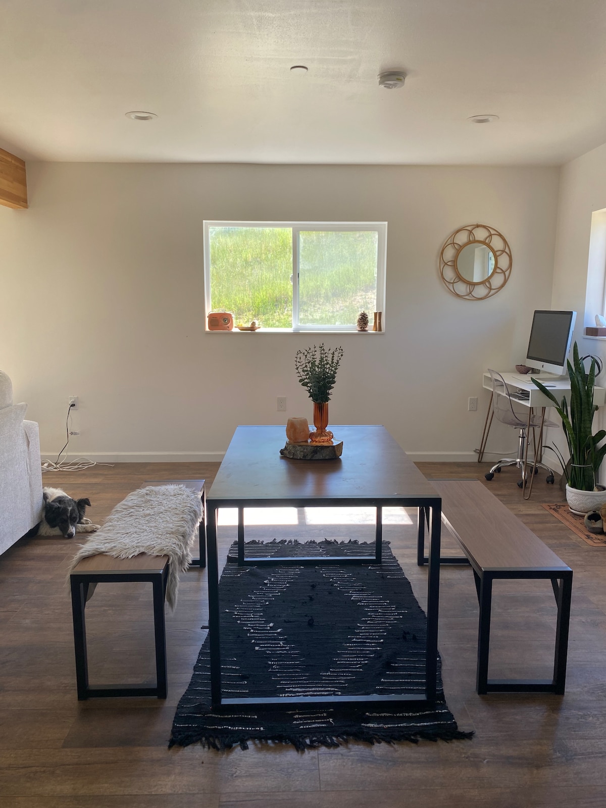 Maaliwalas na pribadong lugar para makapagpahinga at makapagpahinga nang maayos mula sa lahat ng kasiyahan sa labas. Komplimentaryong Wine, Craft Beer, kape, at iba pang inumin. Tinatanaw ng hapag - kainan ang pine forest, may lounge room na may malaking komportableng sectional couch at vinyl record player na may mga rekord na puwedeng tangkilikin! Fire TV sa silid - tulugan na naka - set up para sa streaming, at DVD player. Satellite WiFi gumagana nang maayos ngunit paminsan - minsan glitches. Naging maayos para sa mga bisitang nagtatrabaho nang malayuan, ngunit karamihan ay nasisiyahan sa mga kaganapan o sa labas:)