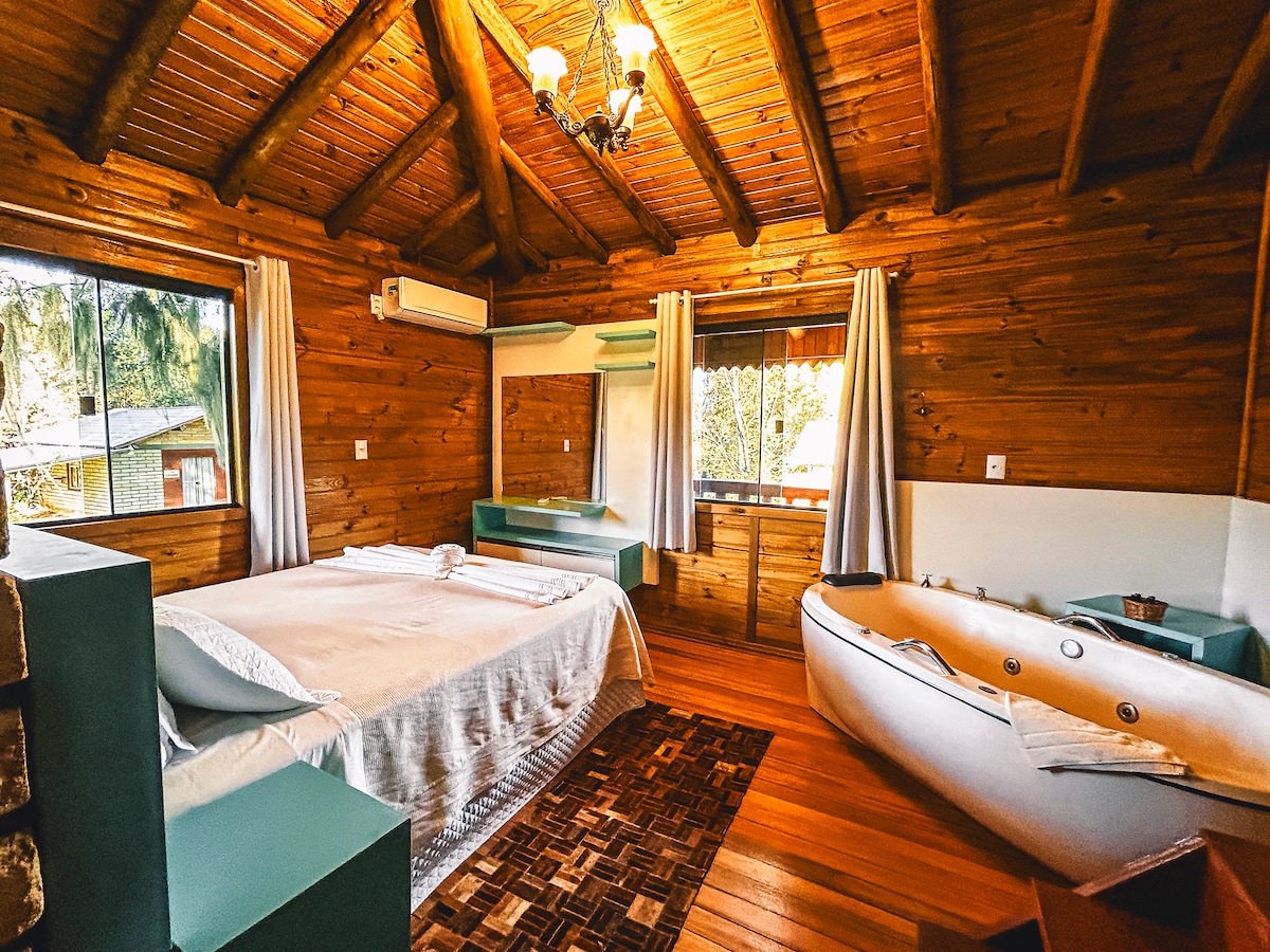 Relaxe neste espaço calmo e cheio de estilo.cabana na montanha, de frente para os Cânions ,toda mobiliada,com lareira ,banheira ,Netflix, cozinha....agendamos voo de balão, passeios a cavalo, quadriciclo, trilhas ...entre outros ,venha passar seu fim se semana em um dos nossos chalés, e viver momentos inesquecíveis