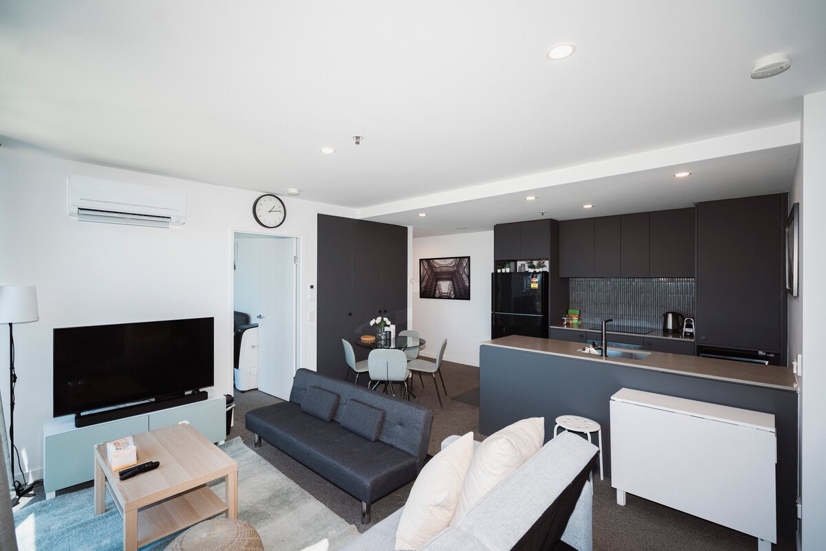 Huwag mag - atubiling tingnan ang aking Airbnb homestay at bigyan ka ng maikling pagpapakilala sa homestay na ito: Mga kalamangan: 1. Kamakailang naihatid noong Setyembre 2022 2. Ang parehong mga silid - tulugan ay may 183 x 203 cm queen bed na may mga spring mattress 3. Dalawang libreng parking space, gated, security patrol sa gabi 4. May bayad na nilalaman ng TV: Prime video, Disney +, Netflix, Apple TV. 5.5 minuto sa McDonalds, KFC, 10 minuto sa Westfield, UC. 6. Sa ibaba ng hagdan ay Woolworths Metro, BWS, Milk Tea Shop, Yachao, Restaurant. Mga posibleng kawalan: 1. Ang ikalawang silid - tulugan ay walang aircon, at maaaring mainit pagkatapos ng sunbathing sa umaga ng tag - init. Ngunit ito ay isang regular na pagsasaayos ng apartment sa Canberra, at gayon din ang mga geocon apartment sa Canberra."Magbibigay ako ng water fan para sa paglamig. 2. Nasa ikalimang palapag sa ilalim ng lupa ang dalawang parking space na may access control.