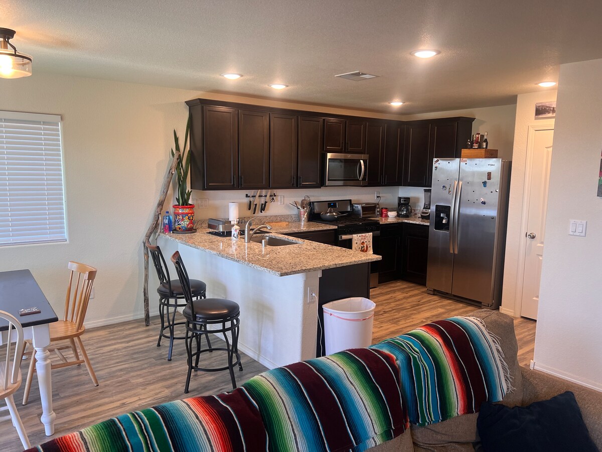Buong Tuluyan sa gitna ng Los Lunas. Tahimik na kapitbahayan. Madaling ma - access ang I -25, 20 milya mula sa Albuquerque. Binakuran ang likod - bahay na may ihawan ng BBQ. Dalawang TV, wifi, dishwasher, washer, dryer. Ang kusina ay may lahat ng kailangan mo para sa kainan sa bahay. Buong Suite, Master Bed/Banyo. Malalaking aparador. Bawal ang mga alagang hayop.