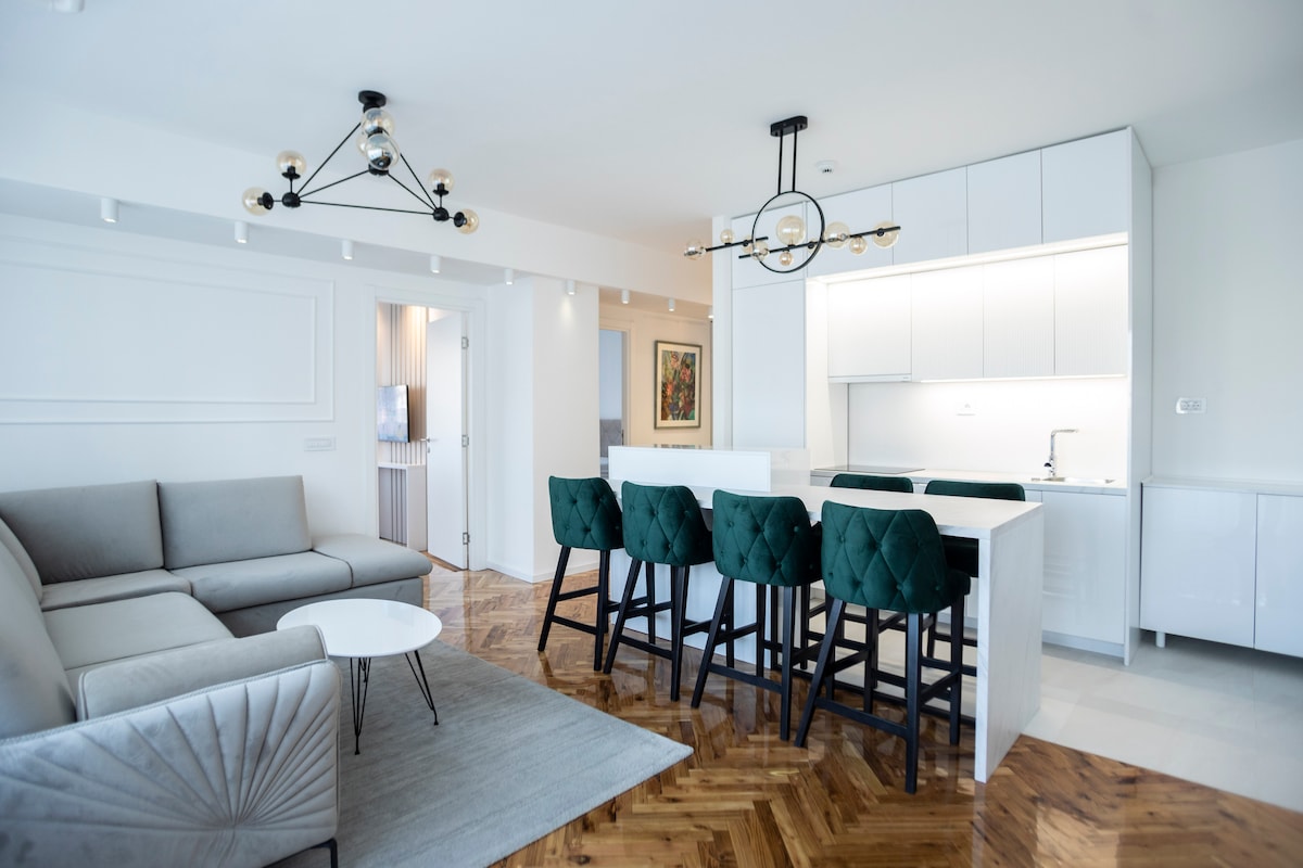 Matatagpuan sa lumang bayan ng Dorcol, malapit sa Kalemegdan fortress (lumang Belgrade) sa bagong complex na K - VATRICT na itinayo noong 2020 na may garahe sa ilalim ng lupa. Ang apartment ay nakaharap sa Danube river, ilang minutong lakad mula sa Danube pedestrian walkways, malapit sa mahabang ruta ng pagbibisikleta (30km) na nag - uugnay sa downtown sa Ada lake. Sa harap ng apartment ay isang swimming pool na 300m ang layo at wellnes center malapit sa Danube river. Hi - fi audio sound, 5.1 system at ultra HD projector at Smart TV. Ang internet ay walang limitasyong may bilis na 150mbps