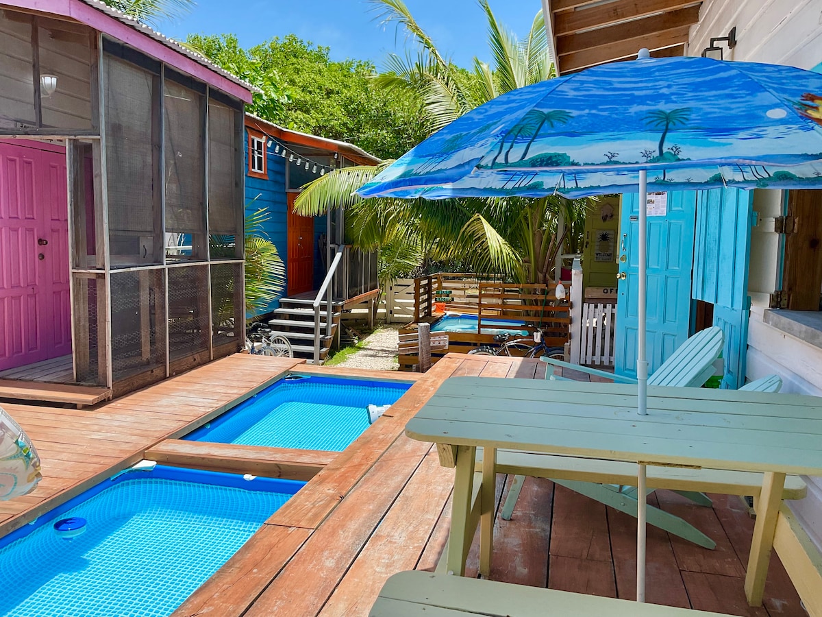 Your tropical island adventure Awaits in this dreamy paradise Relax in a Luxurious King Bed Fully Equipped Coffee bar & drink station Complementary Peddle bikes From the village to the property is a short 10min peddle bike ride to the world famous lazy lizard(The Split ) is a 20 min peddle bike ride Caye Caulker is only 1 mile wide 4 miles long so very easily accessible via bike & walking or grab a golf cart taxi ( golf cart rentals also available) Property features a refreshing pool