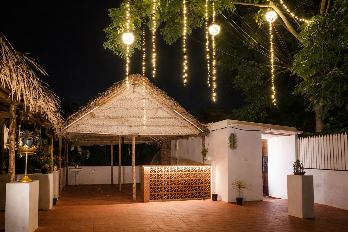 Ang Twilight Terrace ay isang kamangha - manghang triplex villa sa Jayanagar, Bangalore, na idinisenyo para sa marangya at komportableng pamamalagi. Tumatanggap ang 3 Bhk retreat na ito ng hanggang 8 bisita at nagtatampok ito ng maraming maluluwang na bulwagan, pribadong teatro na may mga premium recliner, at nakamamanghang double - heighted terrace na may hardin at bar. Masiyahan sa mga malalawak na tanawin sa skyline habang nagrerelaks nang may estilo, na ginagawa itong perpektong bakasyunan para sa mga pamilya o grupo na naghahanap ng bukod - tanging karanasan sa pamamalagi.