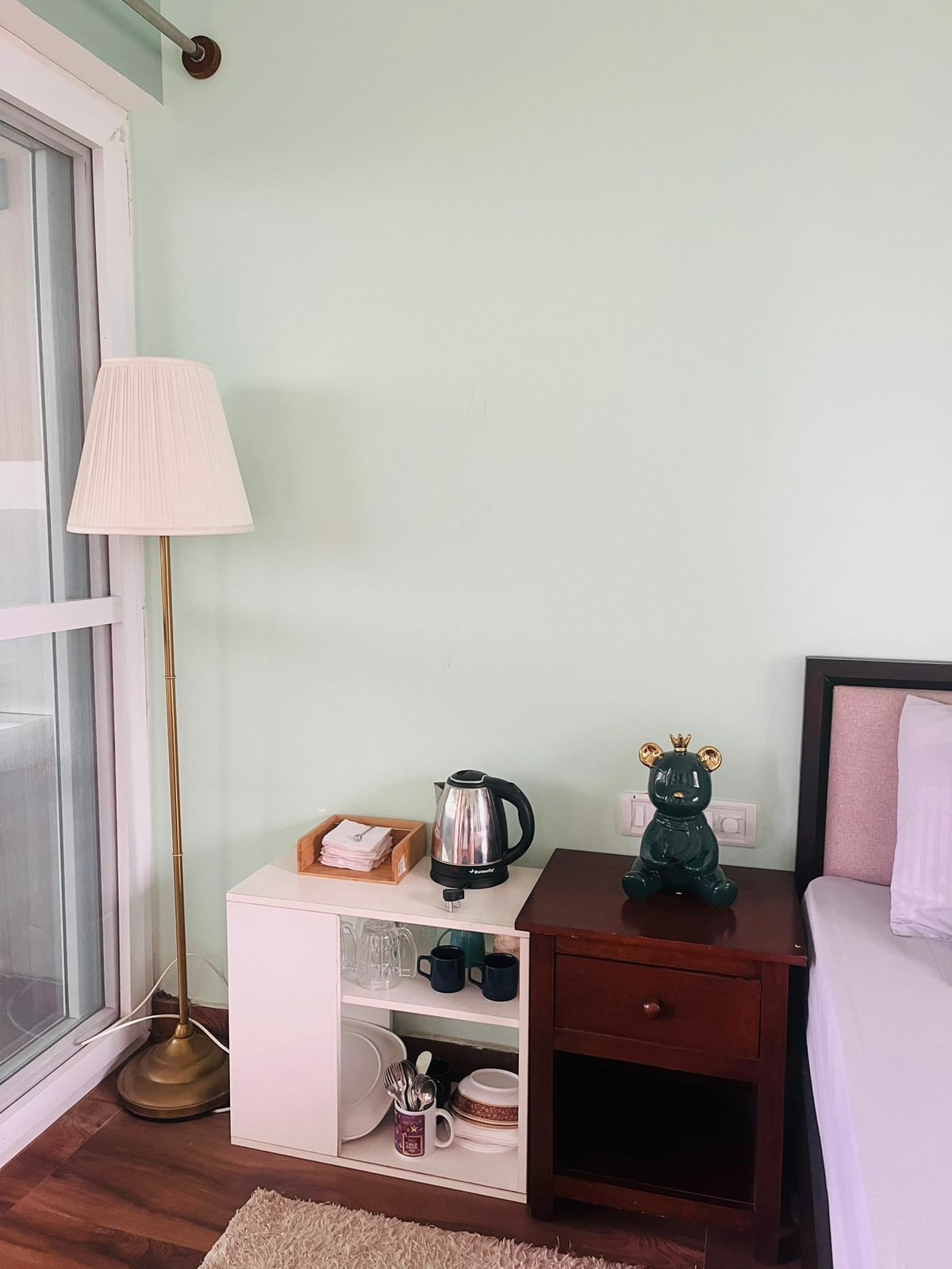 Independent & pet friendly property with pvt entry independently accessible by staircase from outside. Located in serene, quiet and tranquil area, set in green area in a gated community in an independent bunglow yet close to main road. Friendly & safe neighborhood. Large covered sit out for morning/evening tea. Well furnished including kitchenette,fridge,washing machine,aquaguard,WiFi,UPS,AC etc for comfortable long stay. Day to day requirements like grocery, taxi etc available at doorstep.