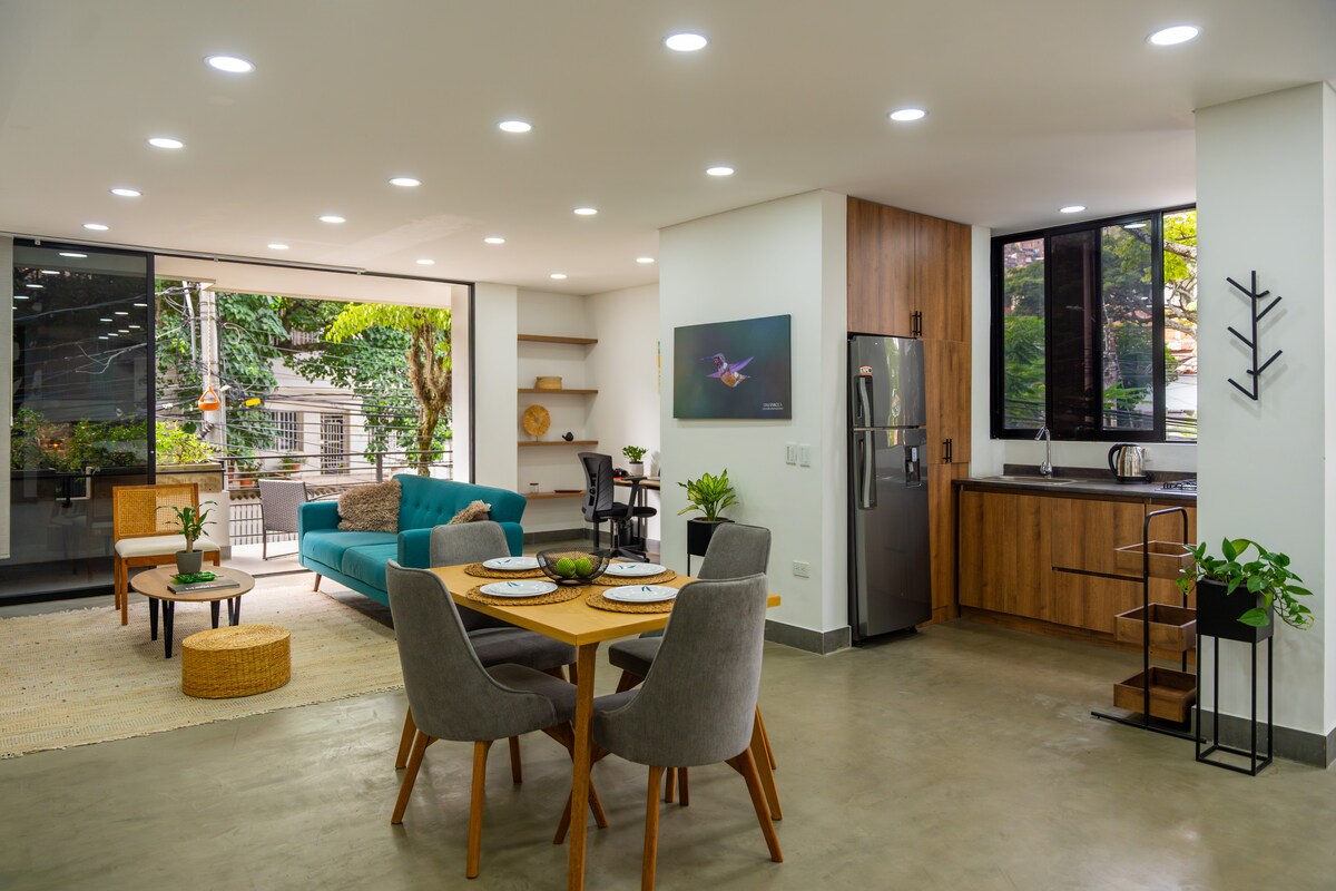 Mamalagi sa moderno, komportable, at bagong apartment na may duyan at idinisenyo na may konsepto ng Caleño na may mural na pumukaw sa mga ibon sa ating rehiyon. Matatagpuan sa gitna /timog ng Cali, 5 minuto (sa pamamagitan ng kotse) mula sa downtown, 5 minutong lakad papunta sa 3 gastronomic area. 8 minuto mula sa Estadio at Unidad Deportiva at 5 minuto mula sa tradisyonal na San Antonio Quarter. Ang natatanging lugar na ito ay may sariling estilo at payo sa mga eroplano turisticos. parqueo naunang reserbasyon at karagdagang gastos