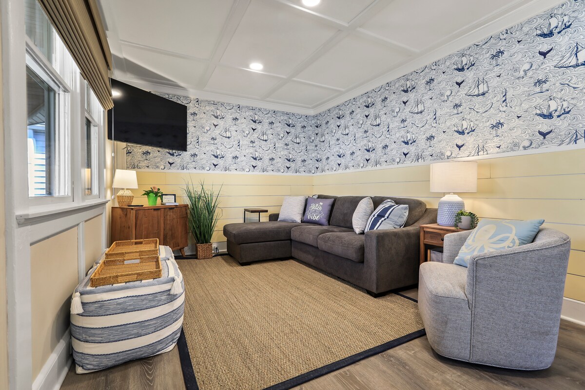 Sa aming Family Style home, nag - aalok kami ng 3 silid - tulugan para komportableng tumanggap ng 6 na bisita. Kasama rito ang 1 Master Bedroom na may malaking flat screen smart TV sa gilid ng 2 pang maluluwag na kuwarto na may mga tuwalya at hoter sa bawat kuwarto. May karagdagang flat screen TV sa isa sa mga karagdagang kuwarto. Kasama sa tuluyang ito ang kusinang kumpleto sa kagamitan, 1.5 banyo, working space island, BBQ grill, Patio set, at maaliwalas na front porch na may 2 upuan at love seat. * Kasama namin ang 5 beach pass sa iyong booking*