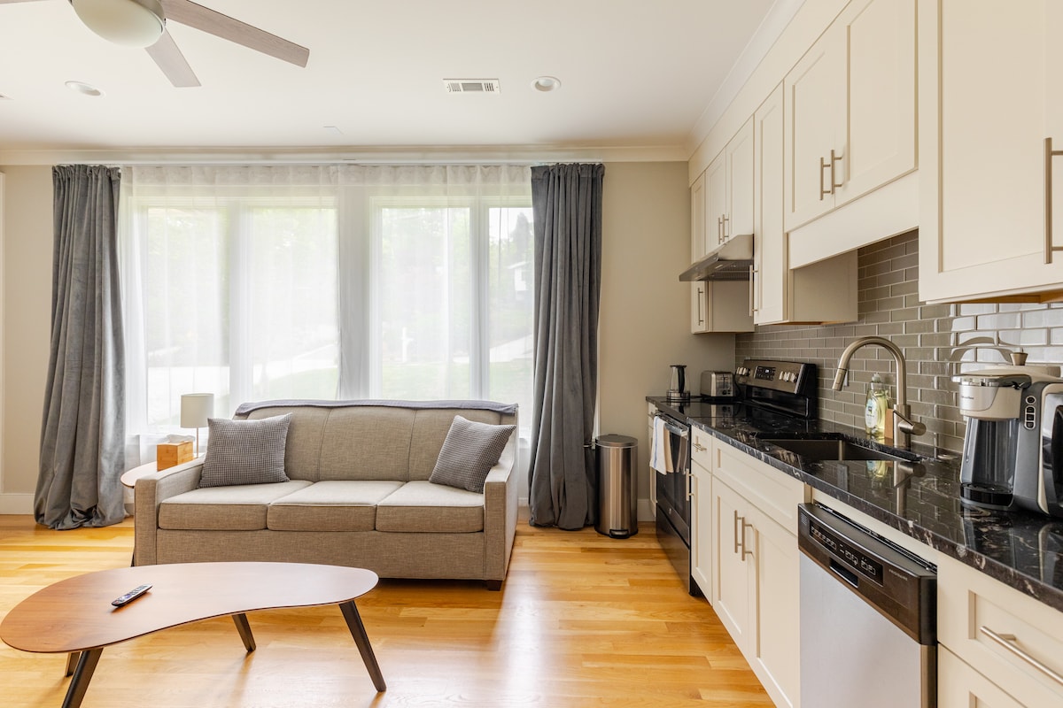 Pribadong suite sa unang palapag sa isang bahay sa kapitbahayan ng Oakhurst sa Decatur na may kumpletong kusina, komportableng queen bedroom, at pull out queen sofa bed. Ang malalaking bintana ay nagbibigay ng natural na liwanag o tamasahin ang iyong kape sa beranda sa harap. • 5 minutong lakad papunta sa Oakhurst Village na may mga restawran at marami pang iba • 10 minutong lakad papunta sa Agnes Scott College • 24 na minutong lakad papunta sa Decatur Square at Marta • Paghiwalayin ang pasukan na walang pinto sa nakalakip na bahay • Paghiwalayin ang HVAC nang walang pinaghahatiang air duct sa bahay
