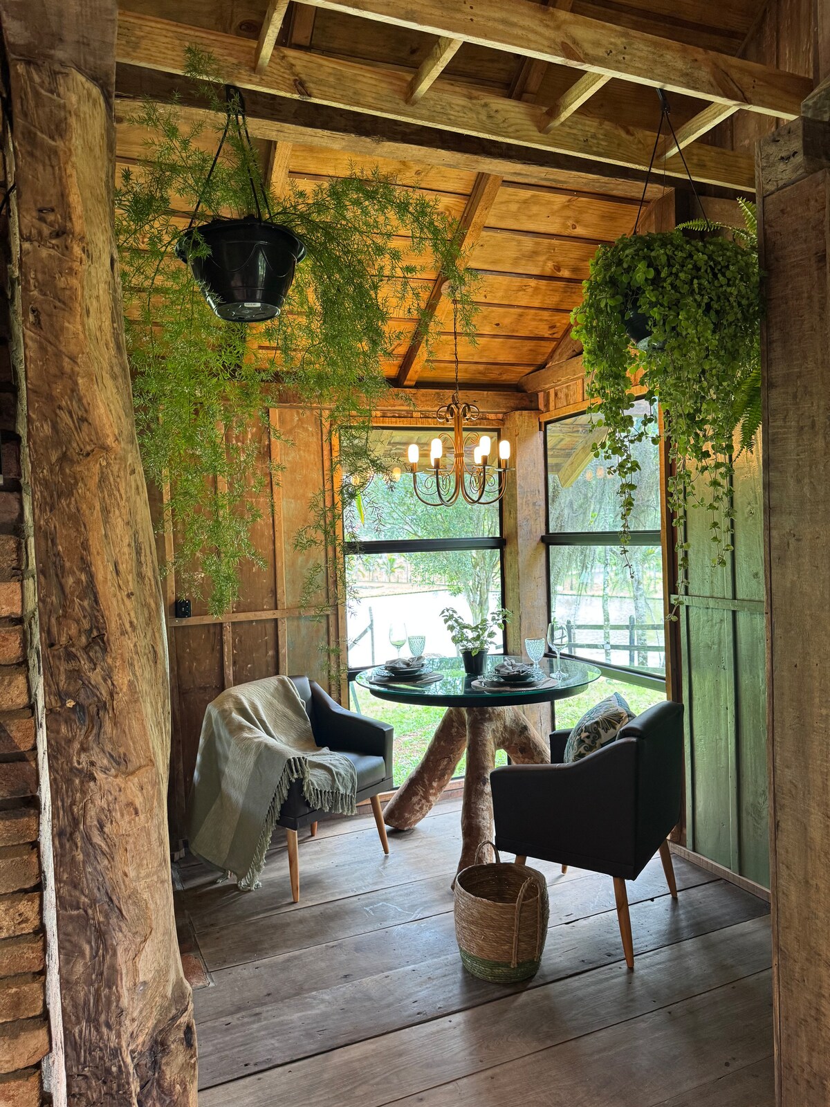 Cabana climatizada com ofurô e vista para natureza