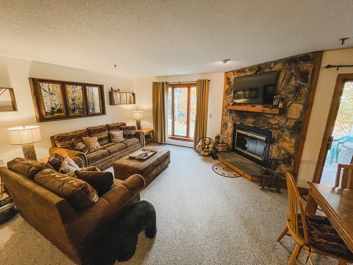 BUKAS NA ANG MGA PETSA PARA SA TAGLAMIG 2025-206! Pagkatapos ng isang dekadang pagbisita sa bundok bilang mga bisita, mayroon na kaming sariling lugar. Nasasabik na kaming i-host ka sa aming tuluyan sa lalong madaling panahon! Masaya sa buong taon ang Stratton Mountain, at ilang hakbang lang ang layo ng condo namin sa lahat ng ito! Kapag oras nang magpahinga, pagmasdan ang tanawin at huminga ng sariwang hangin ng bundok sa balkonahe, magpahinga sa tabi ng apoy, o magpahinga sa iba't ibang parte ng tuluyan.