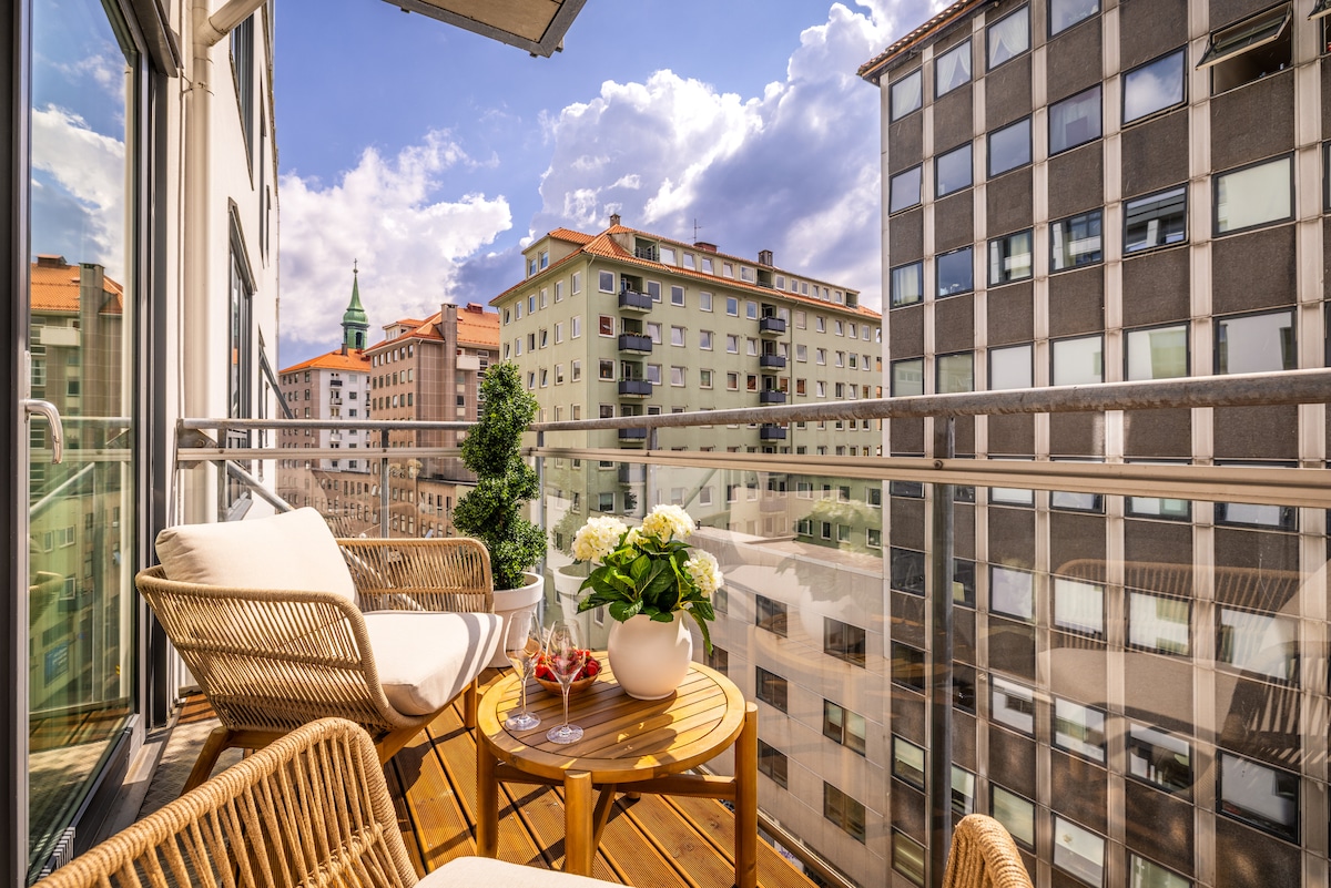 Ang KG14 -16 ay isang nakamamanghang makasaysayang penthouse property sa ganap na apuyan ng Bergen City, kung saan matatanaw ang magandang "Lille Lungegaardsvann". Ang flat ay kumpleto sa gamit na may dalawang pangunahing silid - tulugan w. double - bed, isang karagdagang double - bed sa malaking open -attic/ loft sa ibabaw ng living - area, pati na rin ang isang hiwalay na kama sa pangalawang open -attic/ loft. Ang flat ay perpekto para sa hanggang 6 -7 bisita. Ang patag ay ganap na inayos at napaka - istilong inayos! Marahil isa sa mga pinakamagandang lokasyon sa lungsod!