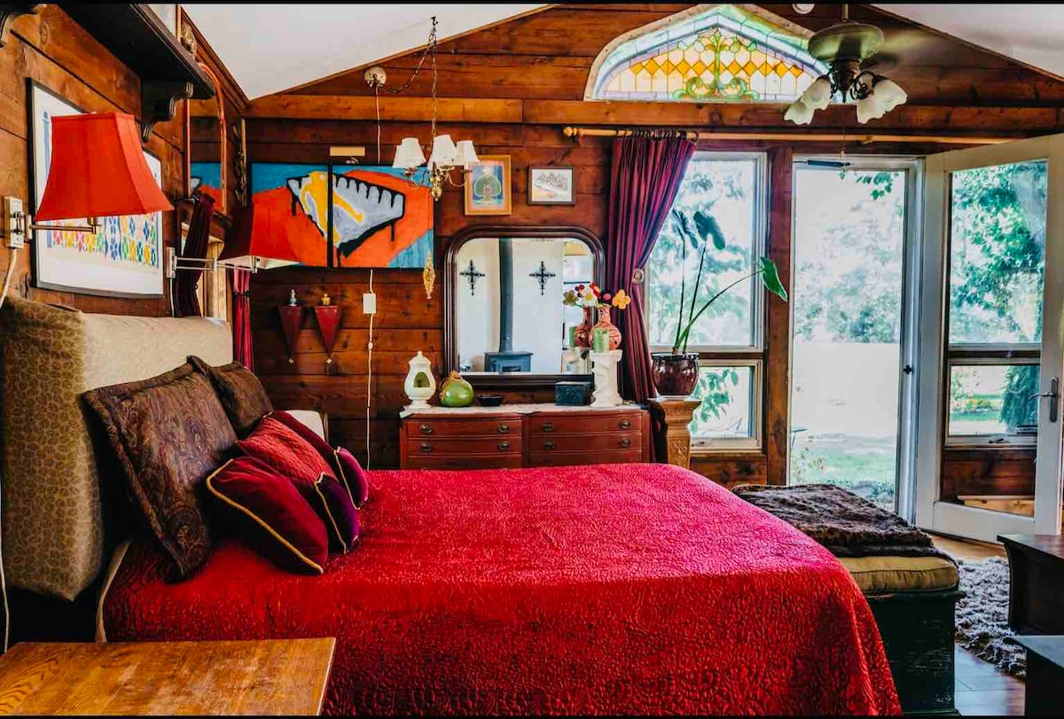 Matamis na cottage sa aming bukid: Kumpletong kagamitan sa kusina at kumpletong living/sleeping area 14’x15' approx., washer/dryer. 4 na Tulog: queen bed at queen sofa bed. Maraming privacy at sa tabi ng organic na hardin, mga bukid, mga matatag at prutas na halamanan. Kasama ang lahat ng utility, TV, at WI - FI. Well tubig na may bagong pampalambot ng tubig at pampainit ng tubig. Palakaibigan para sa alagang hayop; walang bayarin para sa alagang hayop. Maraming daanan sa bukid para lakarin ang iyong alagang hayop. Hikayatin ang tali kung sinanay. Ang mga kabayo ay lumipat sa isa pang bukid habang ang pastulan at matatag na rehab.