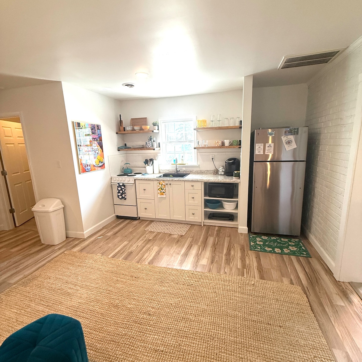 Lots of room for fun. Fenced in backyard to creek for kayaking maybe a fish as well . Bring your one fur buddy . Small zipline too! 4 kayaks available as well . Close to town ( 1 mile) , 60 miles to outerbanks ! It's rustic but we keep it clean and affordable:) In quiet neighborhood. Fishermen favorite .